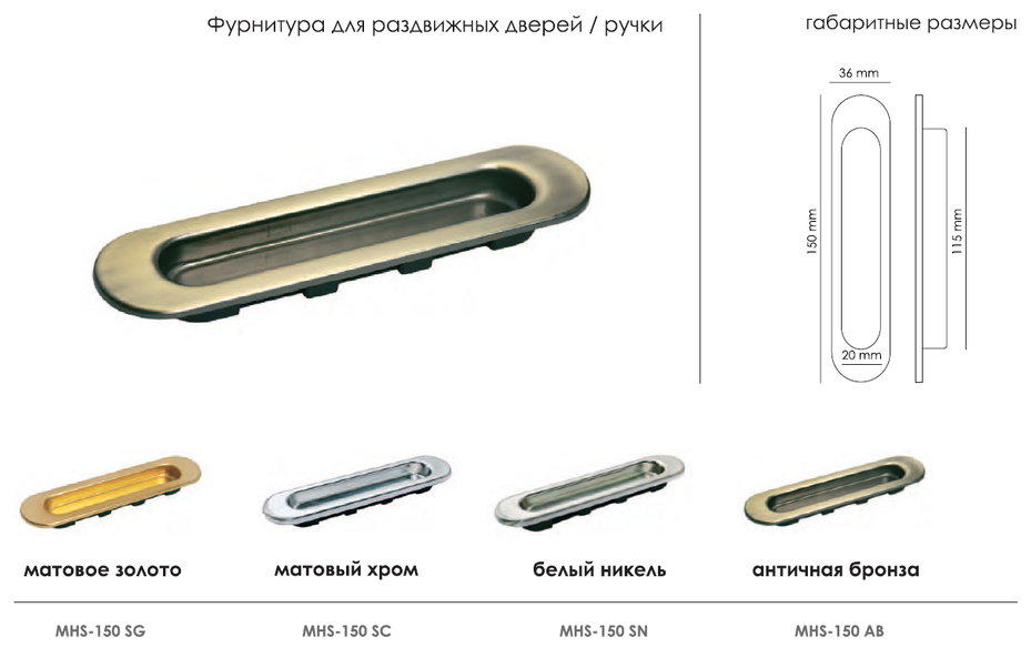 Ручки купе для раздвижных дверей Morelli MHS150/SN белый никель