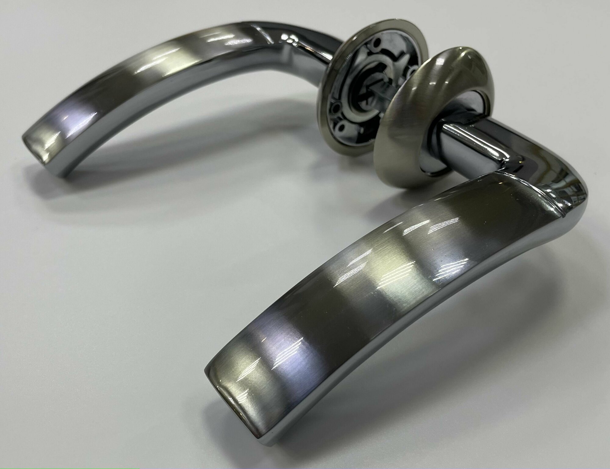 Ручка дверная Morelli MH-02 SN/CP белый никель/хром гладкая, ручки для межкомнатных дверей комплект, фурнитура