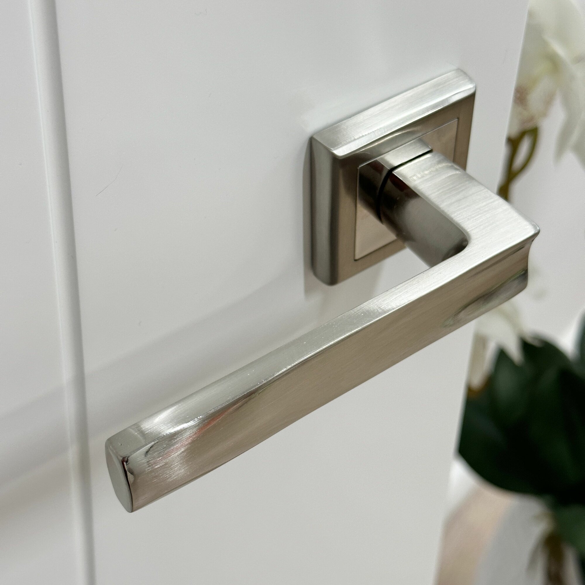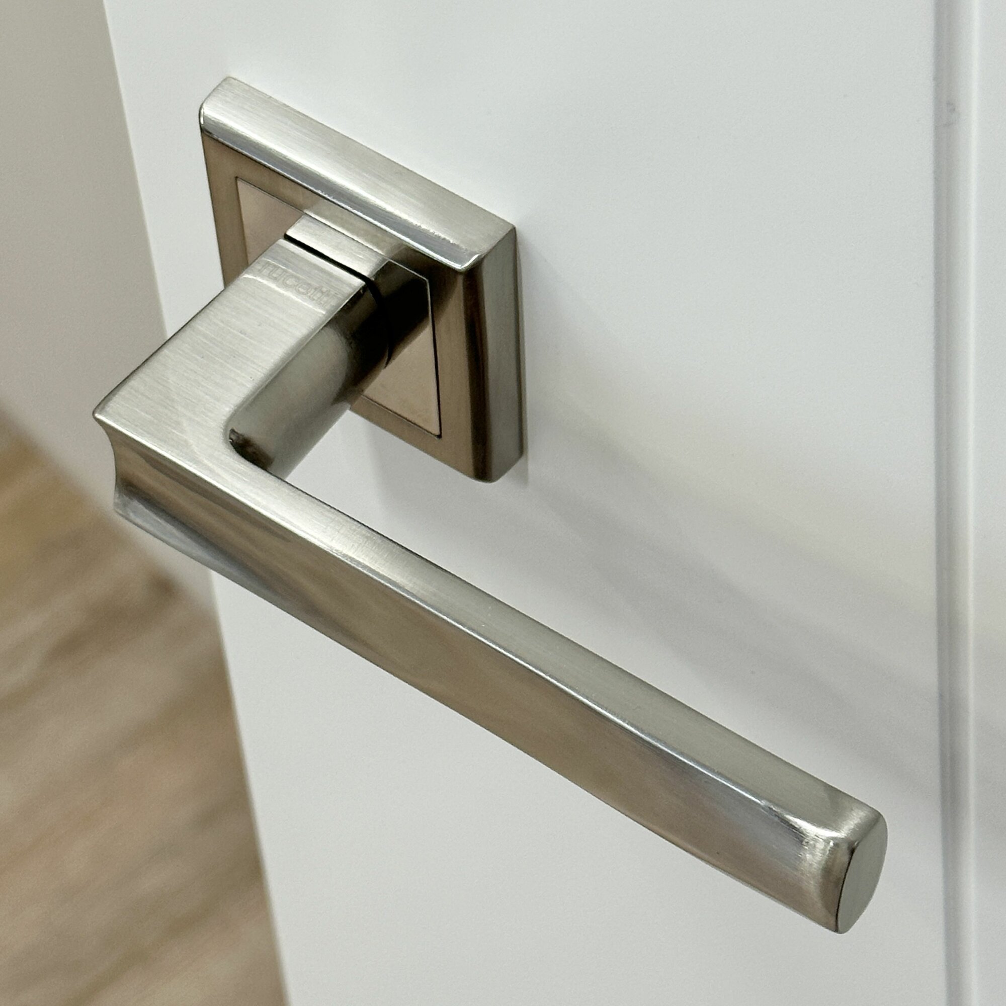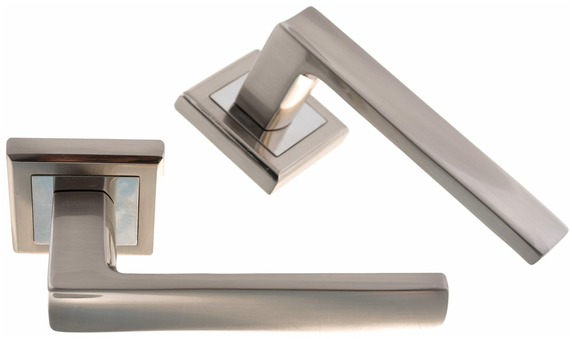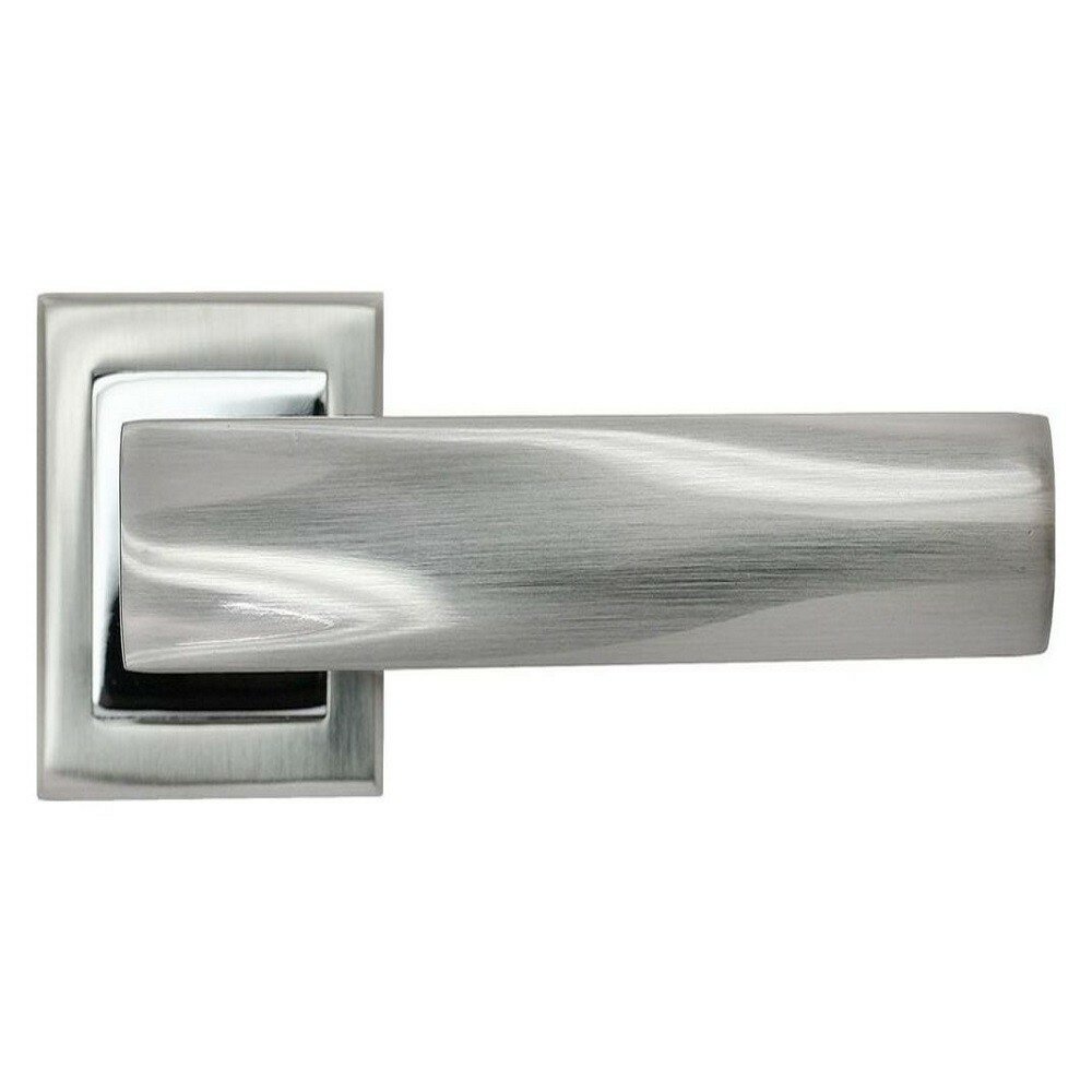 Ручка дверная Rucetti RAP 14-S SN/CP белый никель/хром, ручки для межкомнатных дверей на квадратной розетке комплект, фурнитура