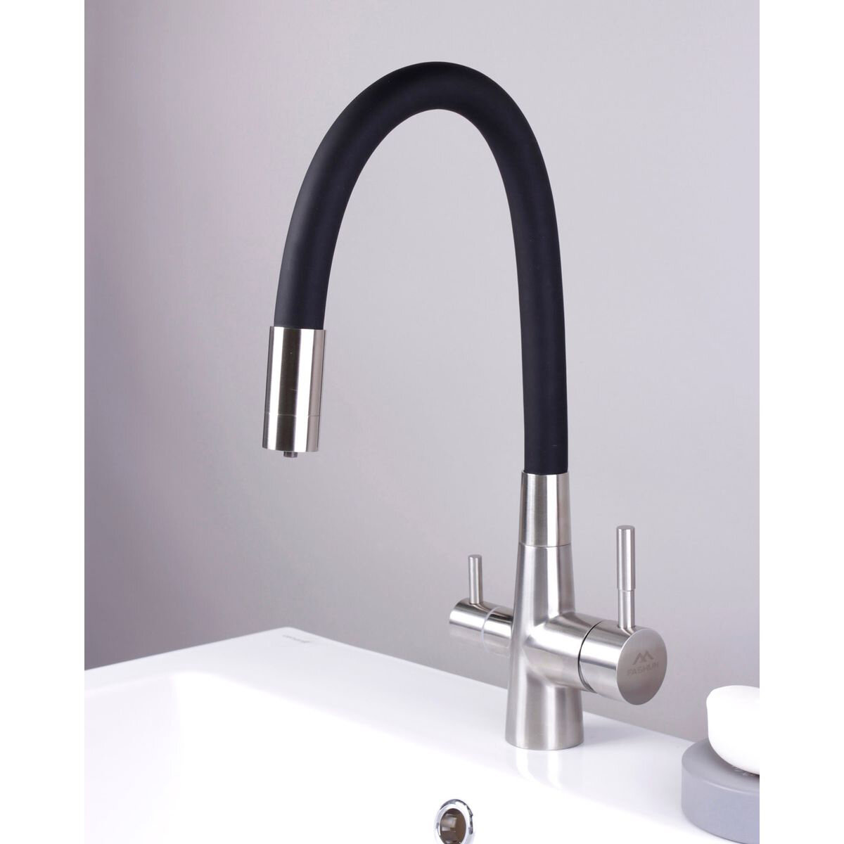 A54029-7 Смеситель Fashun нерж. д/кухни, гибк.излив, подкл.фильтра пит.воды, крепл.-гайка, чёрный