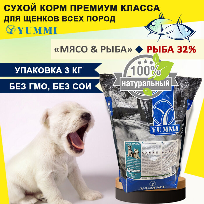Купить Сухой корм для щенков премиум класса YUMMI (Юмми) Premium для щенков Мясо & Рыба 3 кг