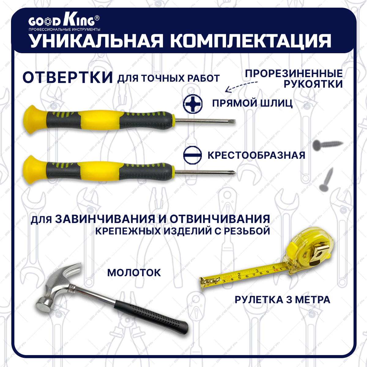 Аккумуляторная дрель-шуруповерт 12В. 1.5Ач GOODKING EC-1201104 с набором инструментов 104 предмета, шурик, набор инструментов, для дома, для дачи