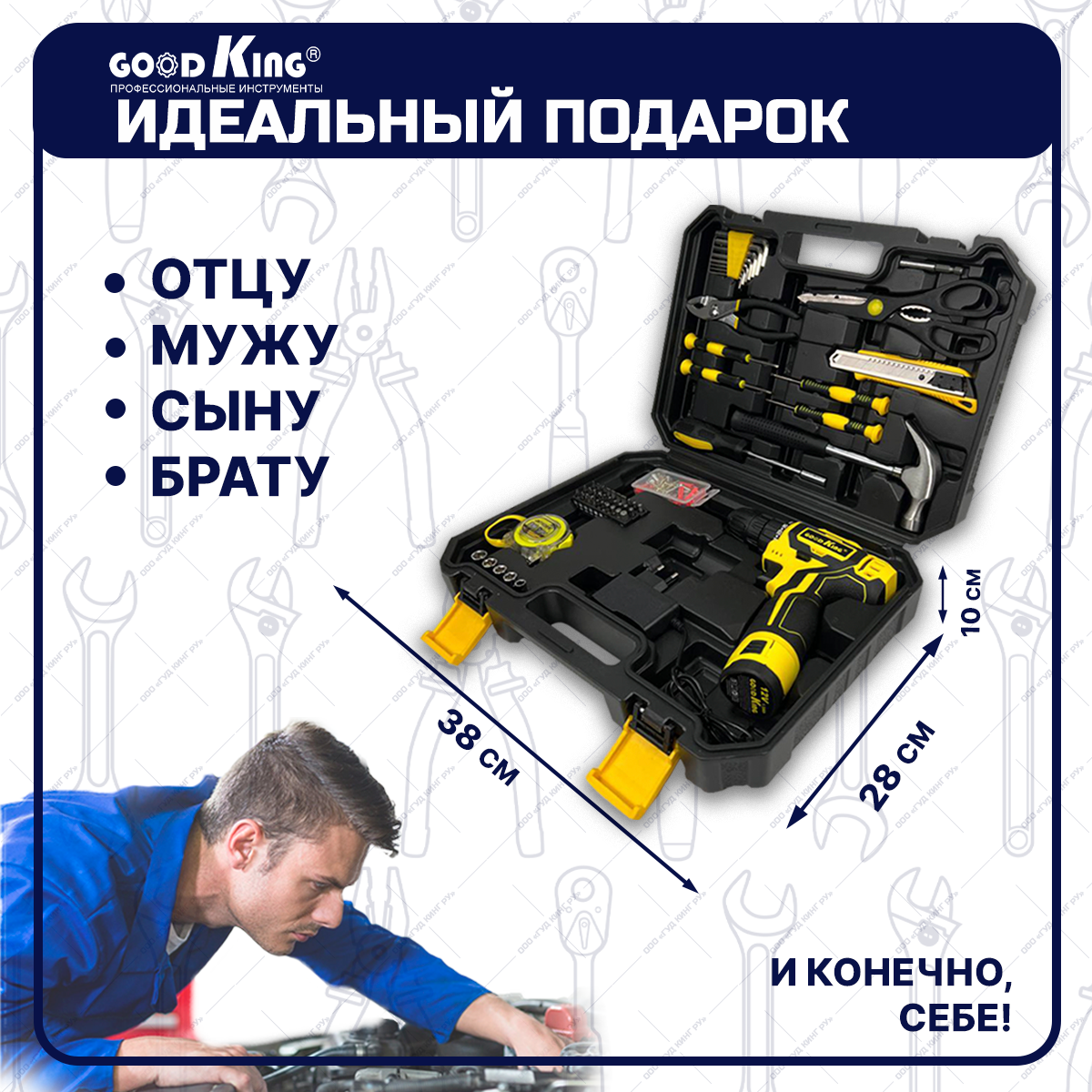 Аккумуляторная дрель-шуруповерт GOODKING EC-1201104, 12В. 1.5Ач с набором инструментов 104 предмета. интересное: