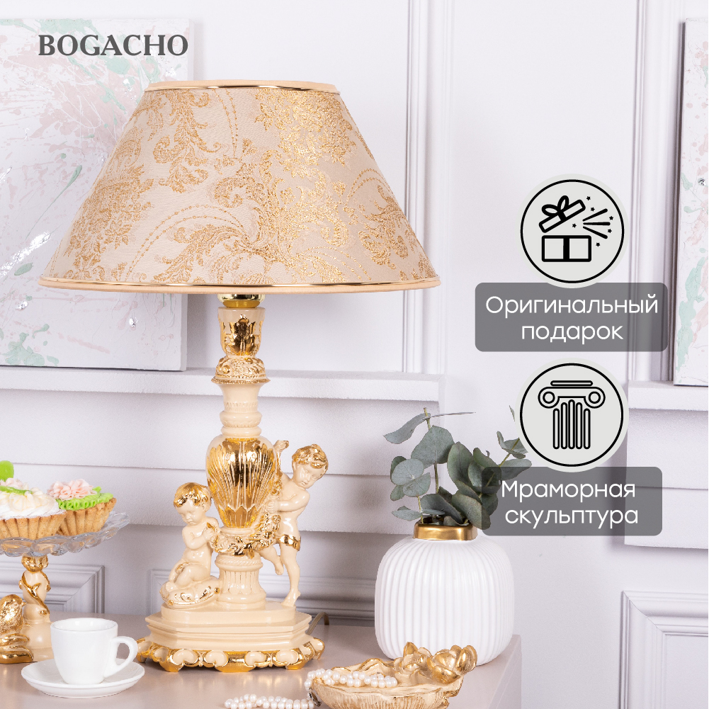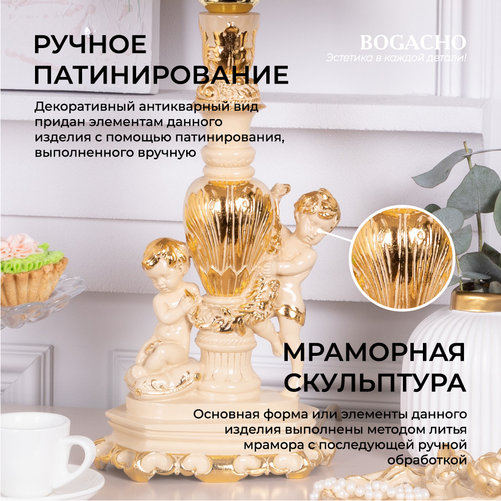 Настольная лампа Bogacho Путти с абажуром №38 айвори