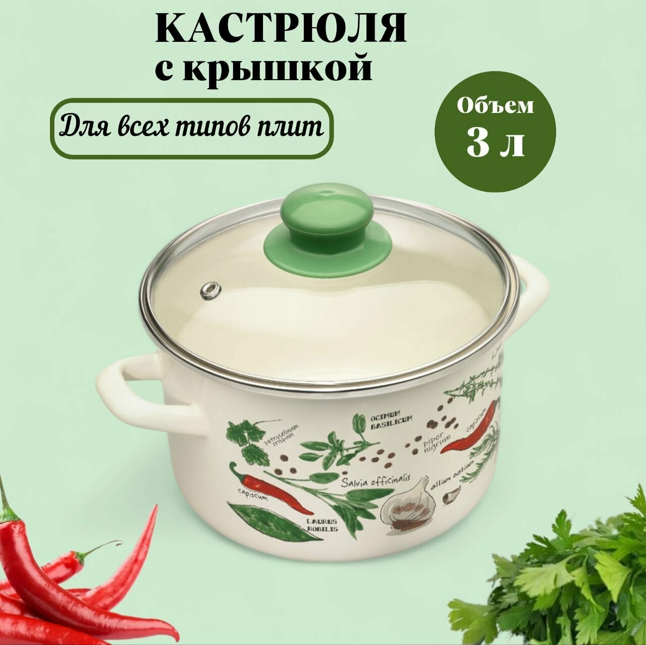 СохранитьКастрюля глубокая эмалированная со стеклянной крышкой, 3 л, Специи интересное: