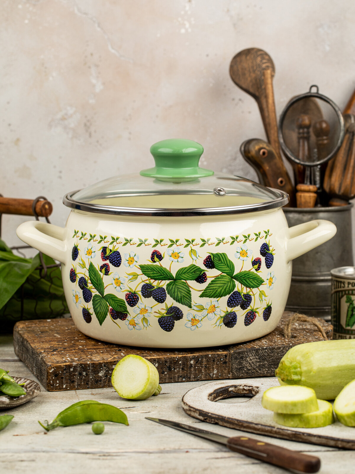 Кастрюля эмалированная Metrot Ежевика, с крышкой, 5,7 л