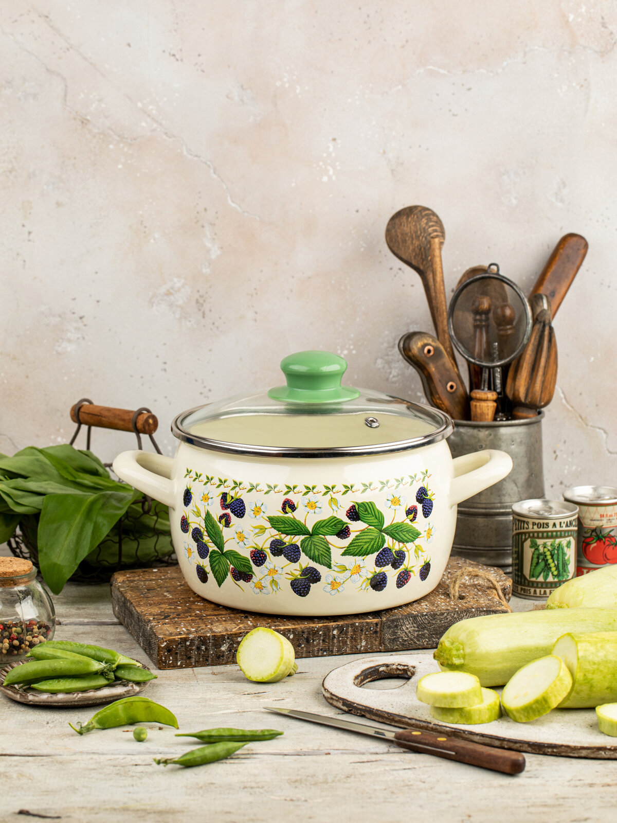 СохранитьКастрюля глубокая эмалированная со стеклянной крышкой, 2,4 л, Ежевика интересное: