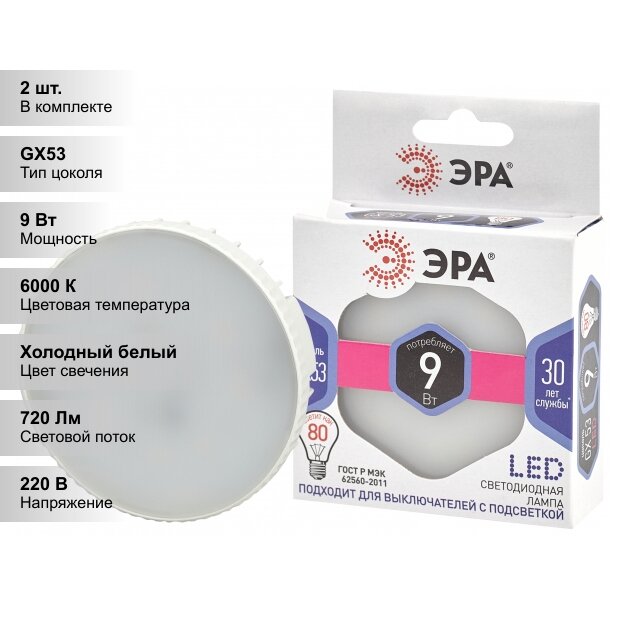 Купить (2 шт.) ЭРА LED GX-9W-860-GX53