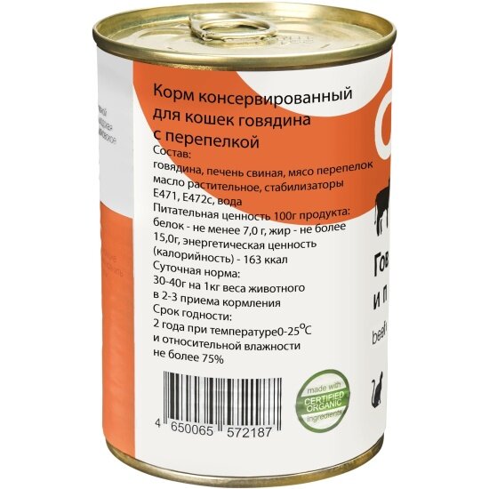 Organix консервы для кошек с говядиной и перепелкой интересное: