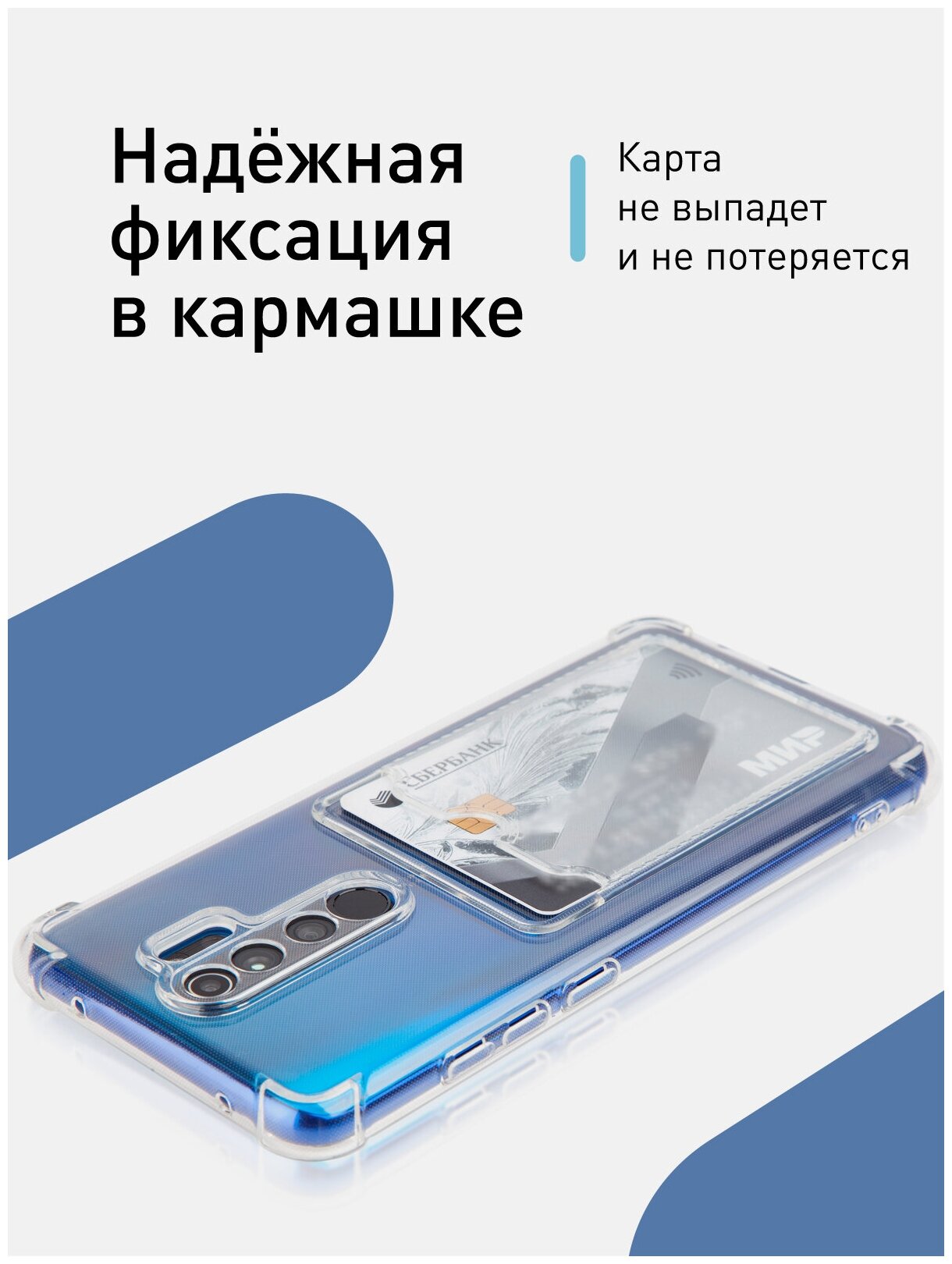 Купить Чехол с карманом для карты на Xiaomi Redmi Note 8 Pro (Сяоми Редми Ноут 8 Про, Нот 8Про). Противоударный, полная защита модуля камер, прозрачный