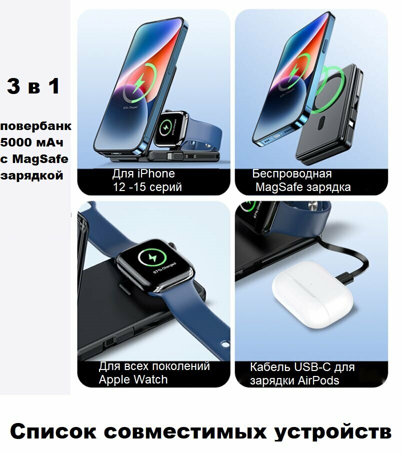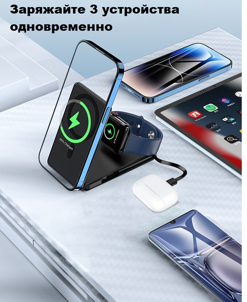 Ниже Вы можете прочитать отзывы на Зарядная беспроводная станция 3 в 1 со встроенным аккумулятором 5000 мАч, ознакомится с подробными характеристиками, посмотреть интересные обзоры и фотографии на Зарядная беспроводная станция 3 в 1 со встроенным аккумулятором 5000 мАч.