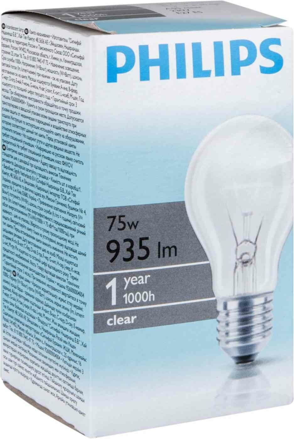 Лампа накал. Груша E27 75Вт 230В прозрачная PHILIPS интересное: