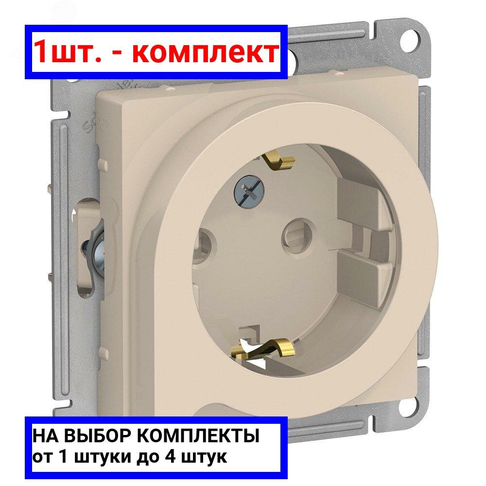 Розетка ATLASDESIGN, скрытый монтаж, с заземлением, со шторками, бежевый | код. ATN000247 | Schneider Electric ( 1шт. )