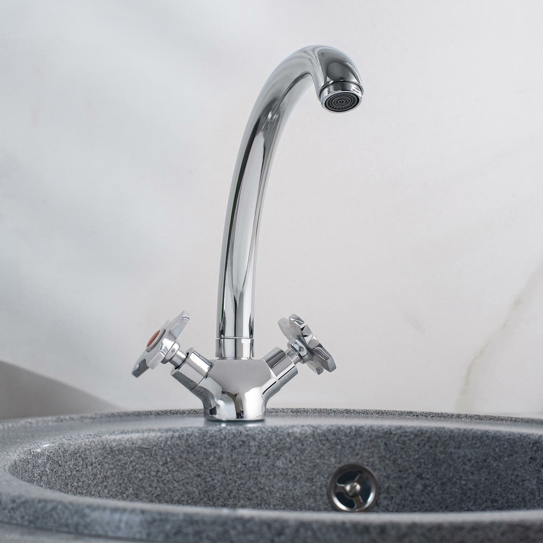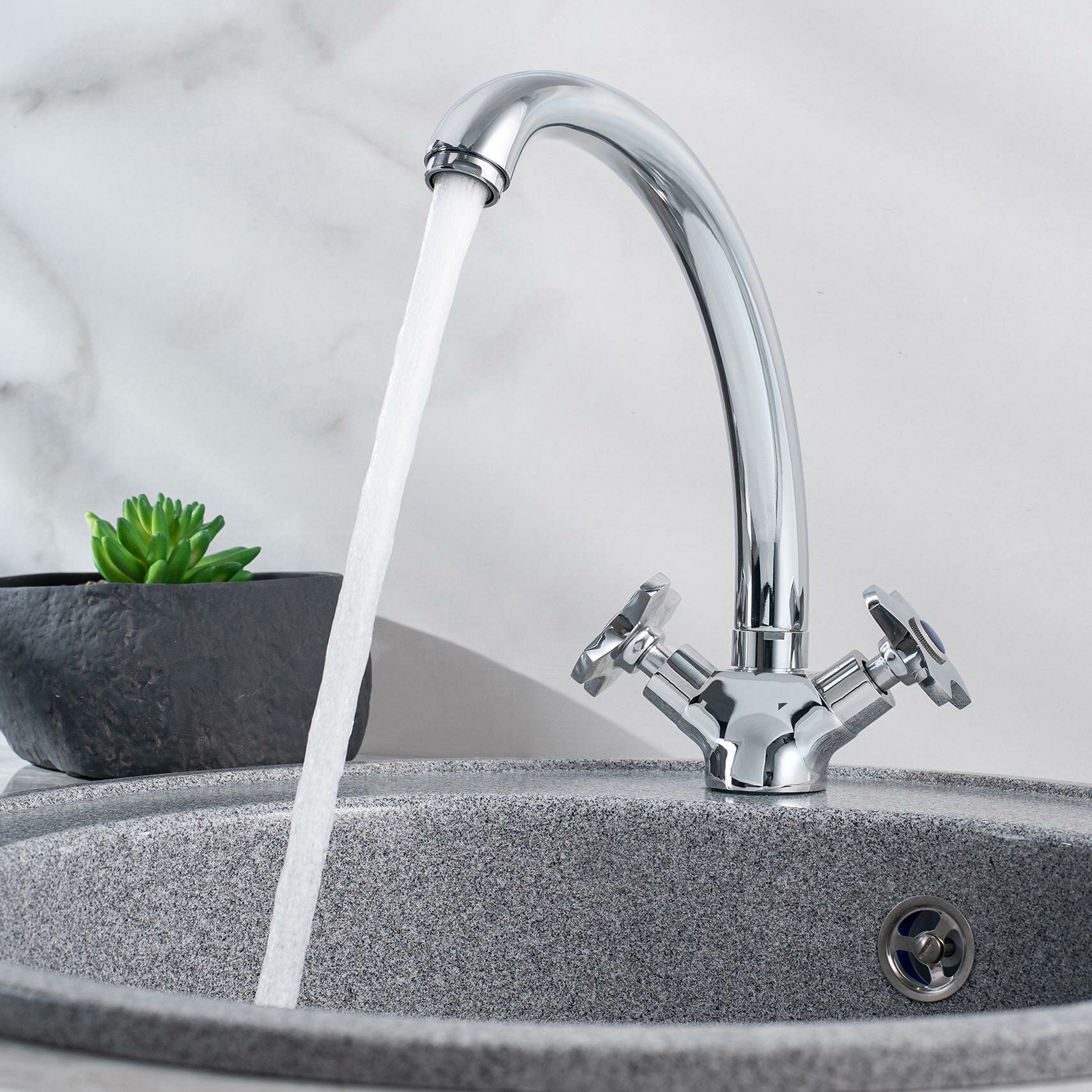 Смеситель для кухни, РМС SL115-273F, поворотный излив, двухвентильный, с гибкой подводкой интересное: