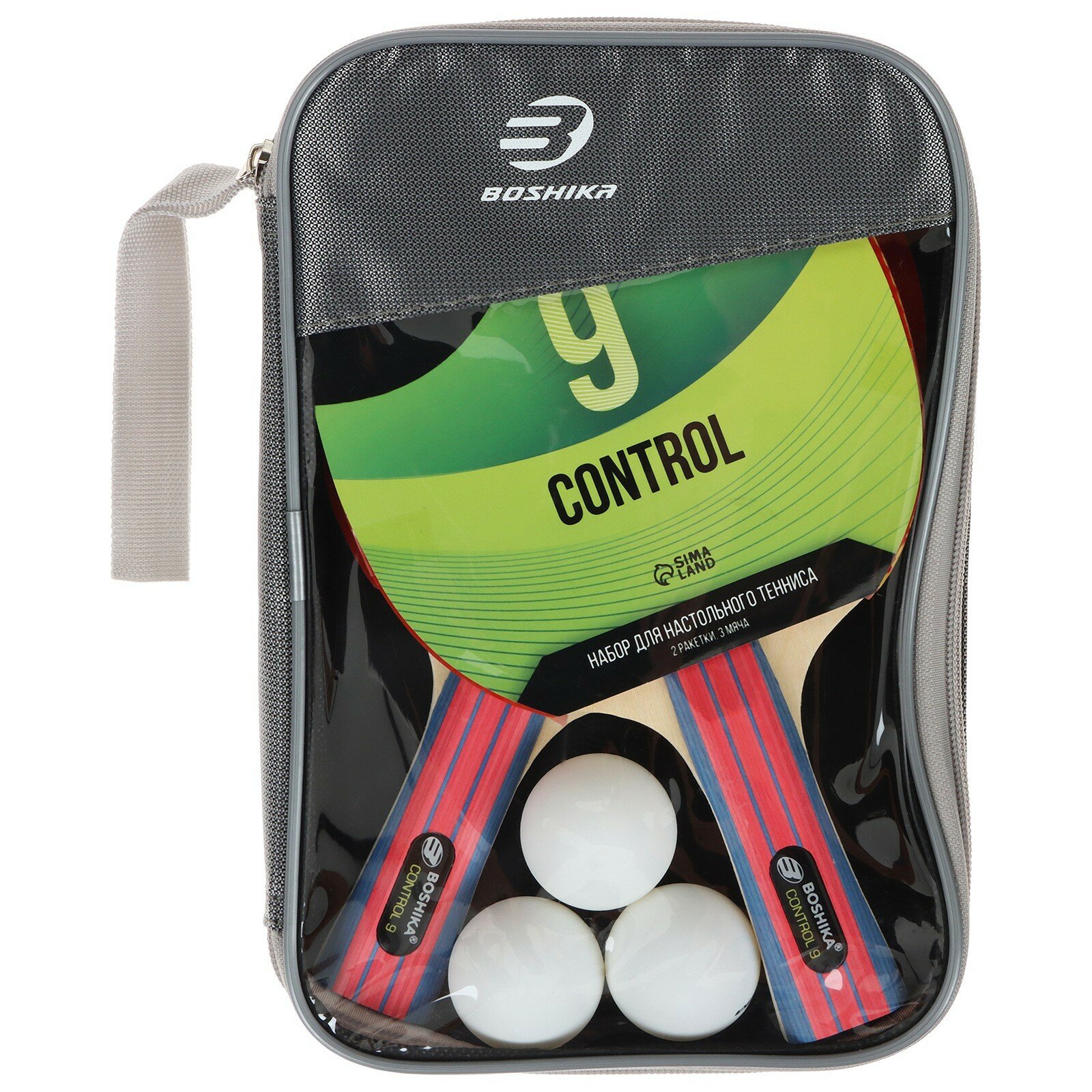 Набор для настольного тенниса ТероПром 7343338 BOSHIKA Control 9, 2 ракетки, 3 мяча, накладка 1,8 мм, коническая ручка, 7343338