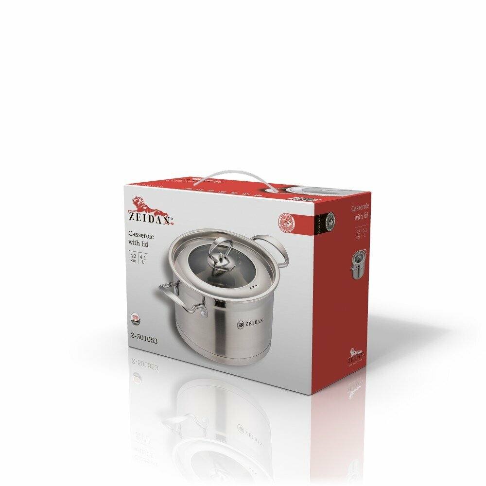 Купить Кастрюля 4,1 литра нержавеющая сталь Zeidan со стеклянной крышкой 22 см для всех видов плит, включая индукционную