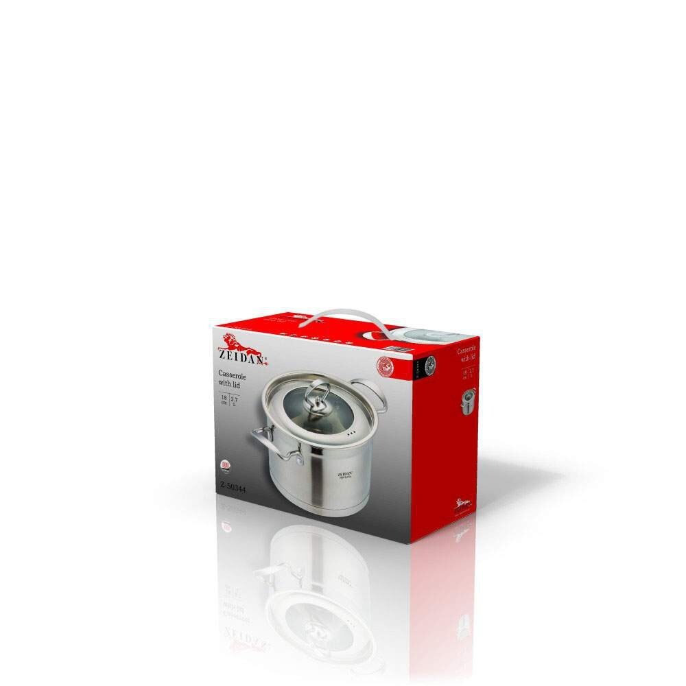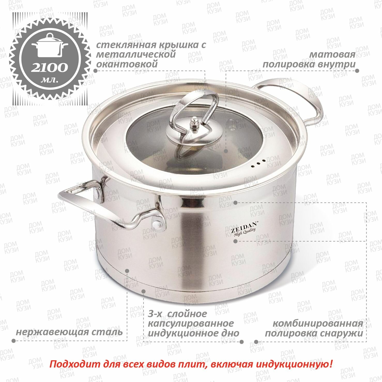 Купить Кастрюля нержавеющая сталь Zeidan 2,1 л со стеклянной крышкой 18 см для всех видов плит, включая индукционную