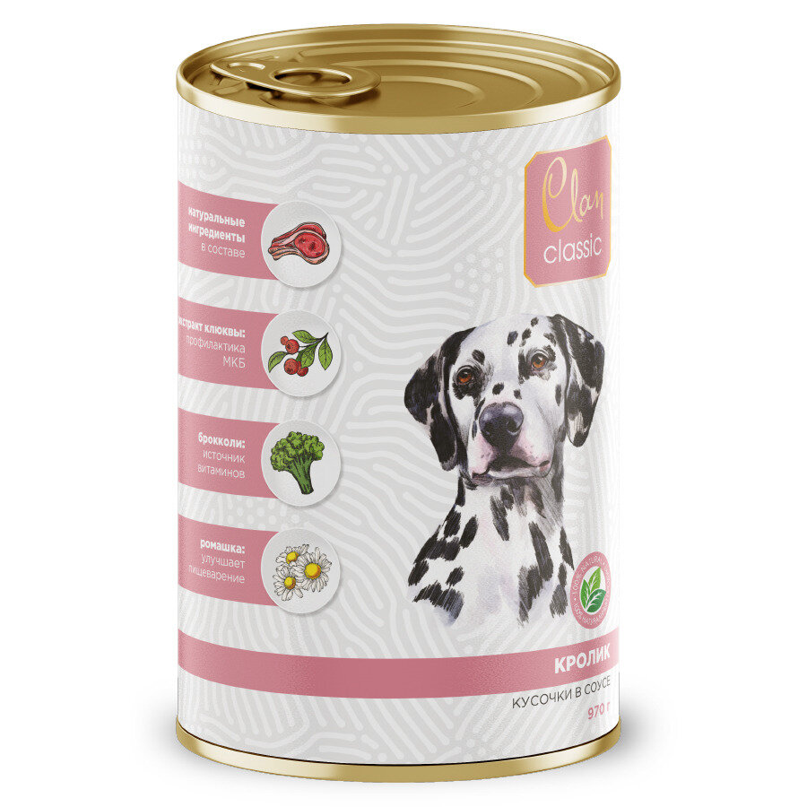 Влажный корм для собак Clan Classic, кусочки в соусе с кроликом 970 г х 6 шт