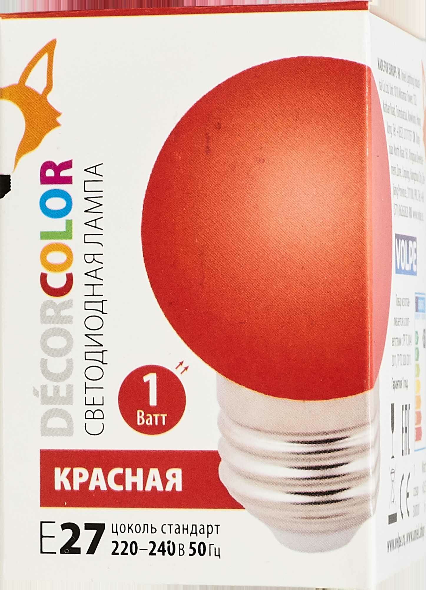 Декоративная светодиодная лампа Volpe led-g45-1w/red/e27/fr/с ul-00005646