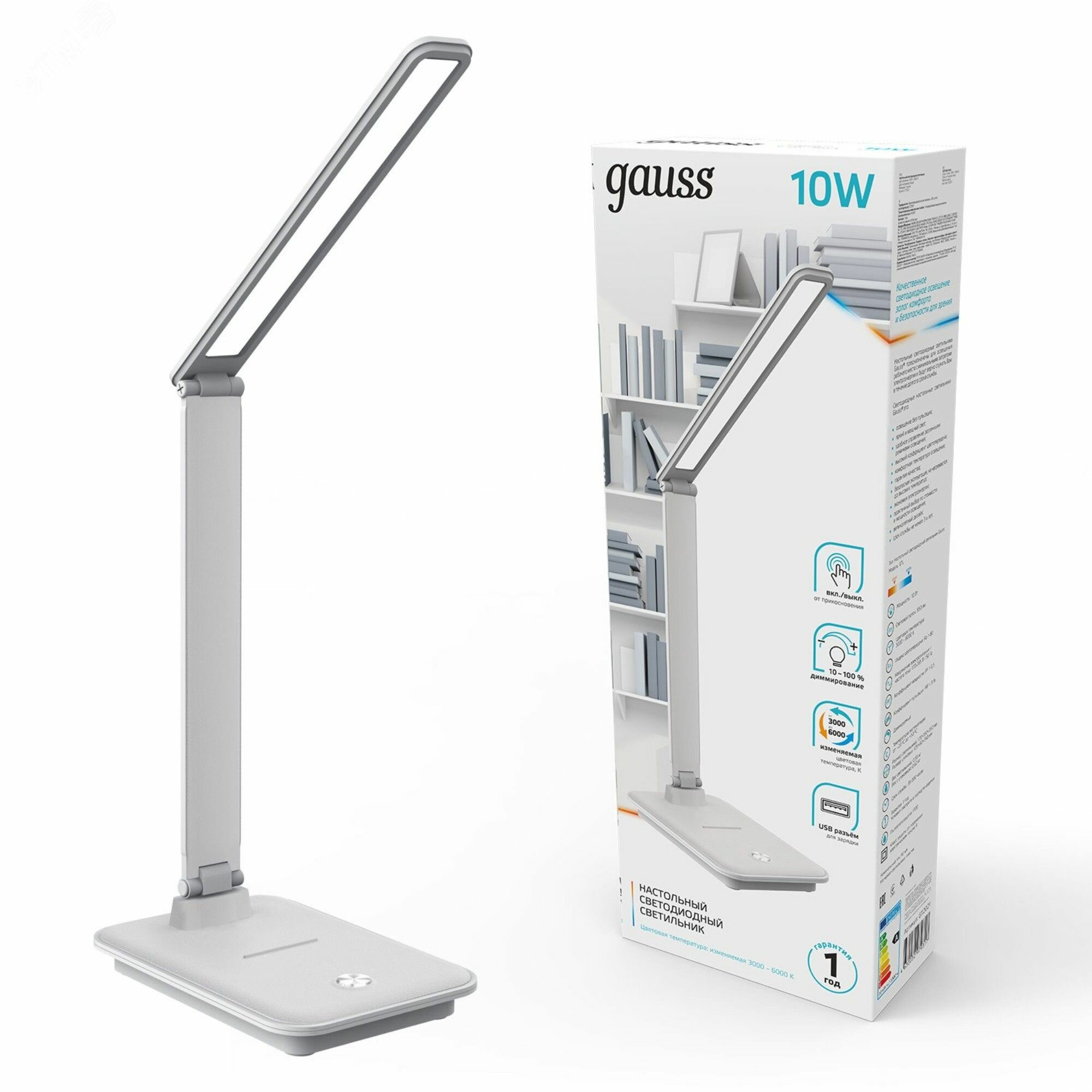 Светильник настольный Gauss модель GTL202 10W 550lm 3000-6000K 170-265V белый диммируемый USB LED 1/8/32