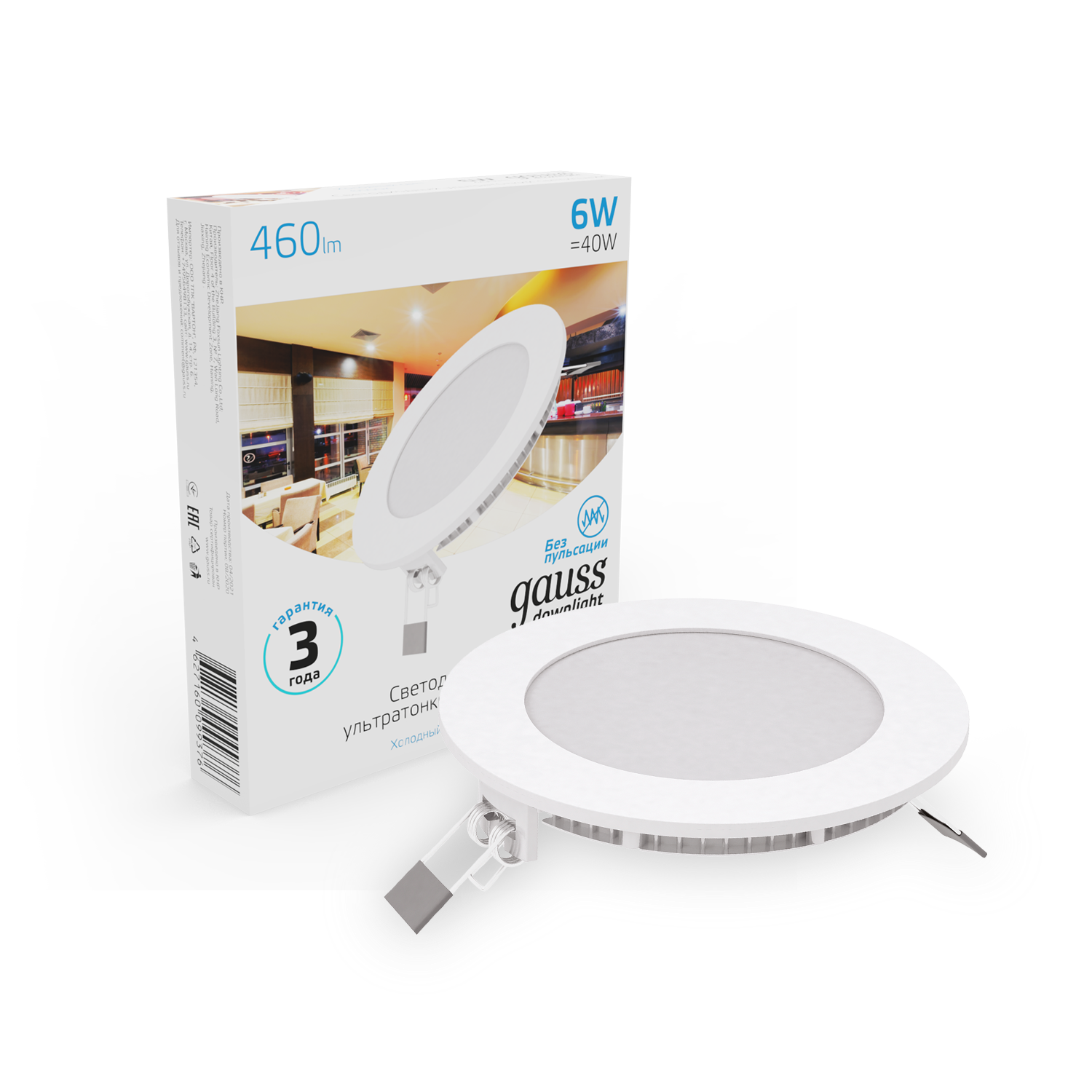 Купить Светильник встраиваемый ультратонкий 6W IP20 120х22 6500K круглый Gauss