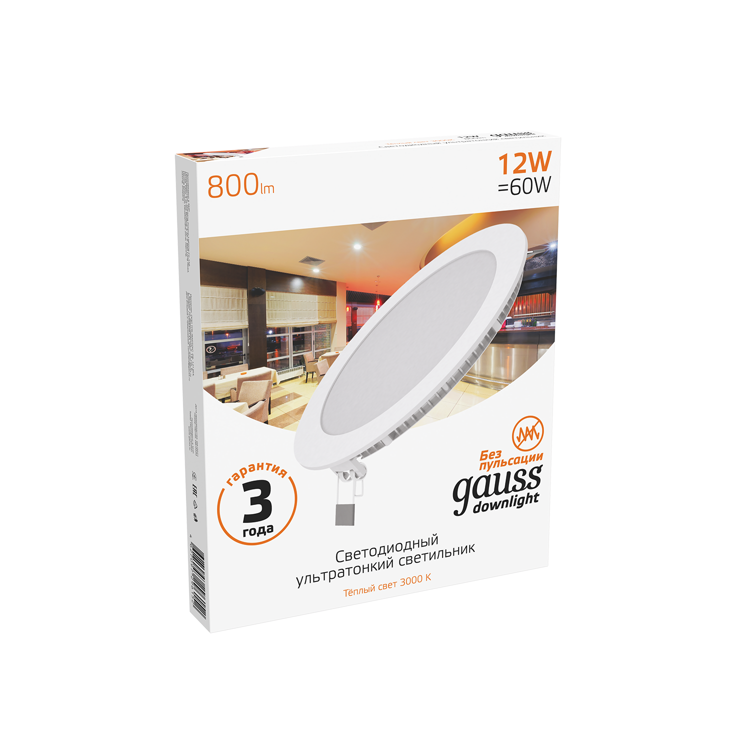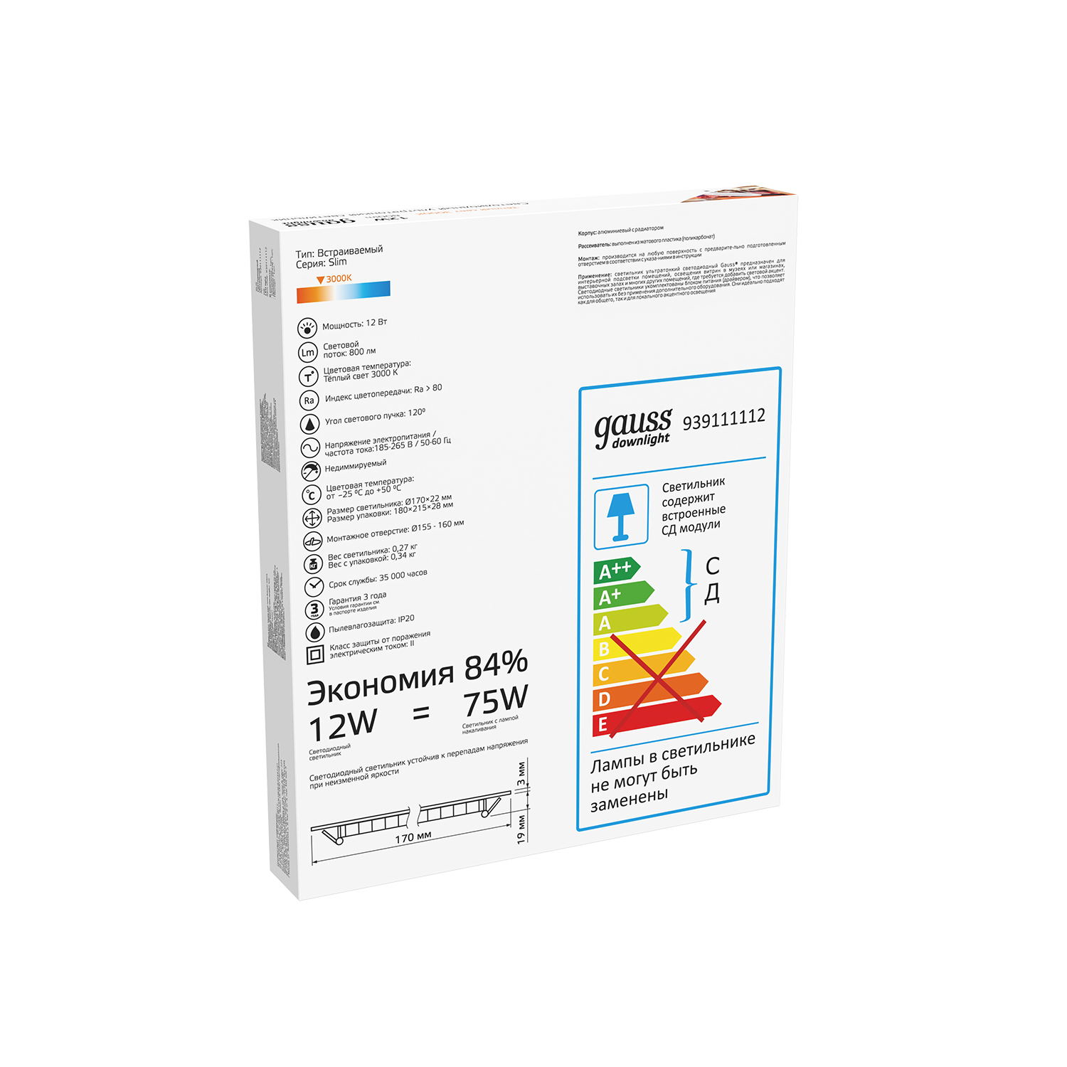 Купить Светильник встраиваемый ультратонкий 12W IP20 170х22 3000K круглый Gauss