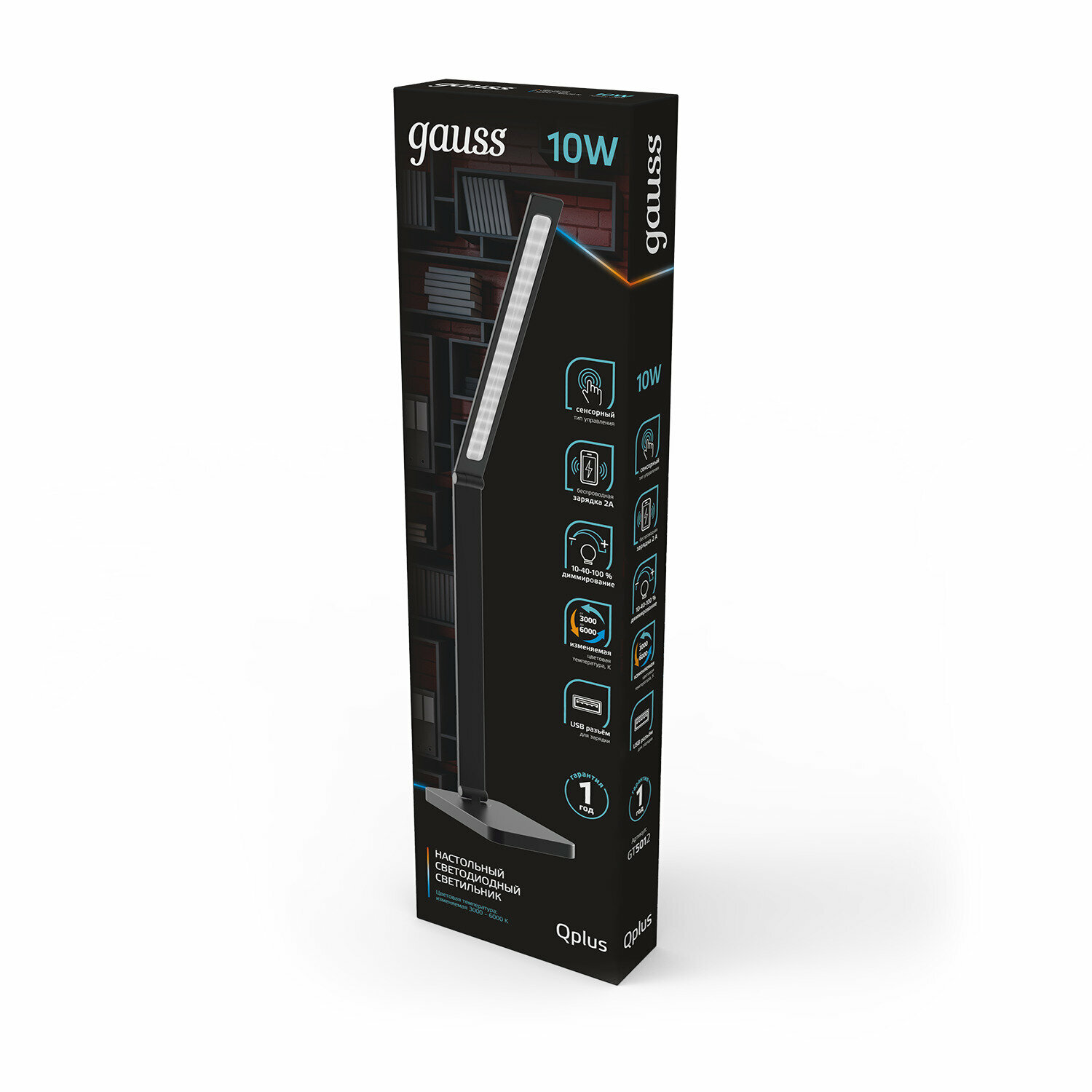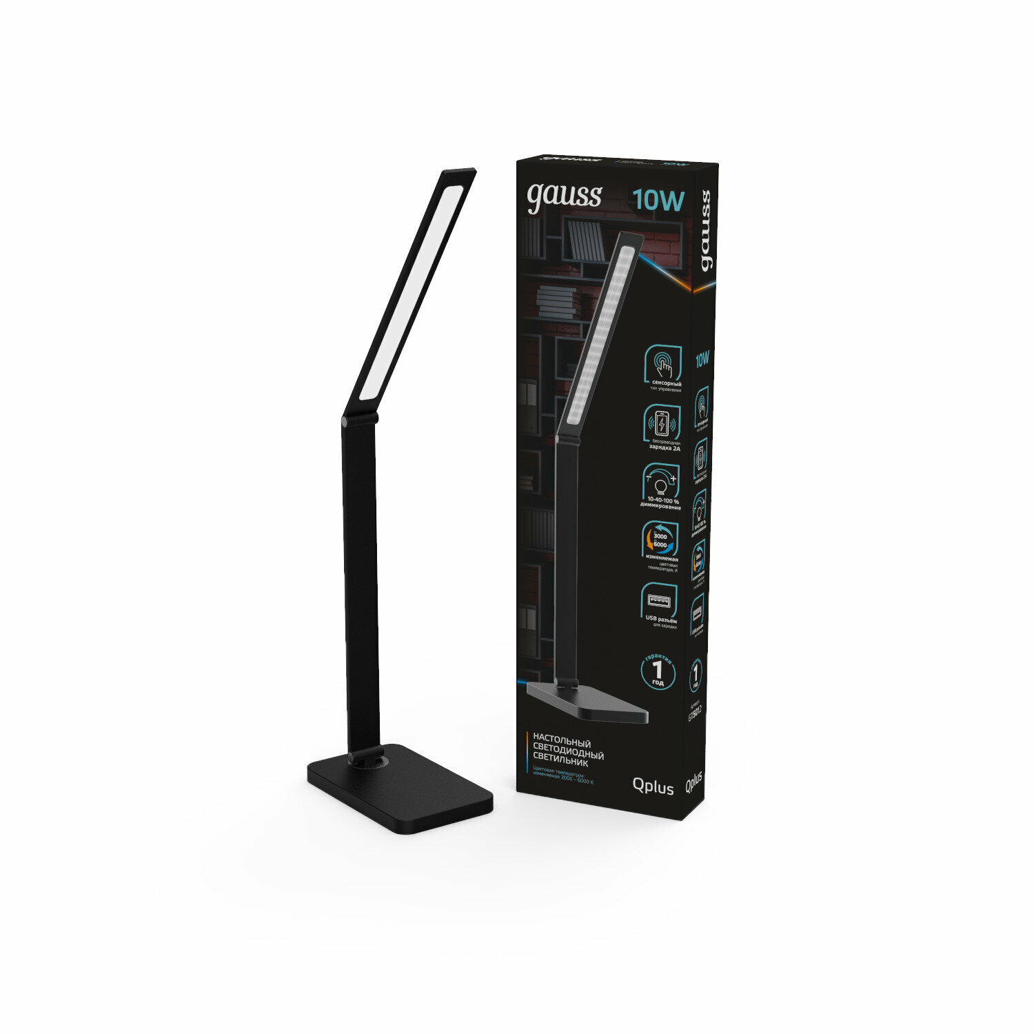 Купить Светильник настольный Gauss Qplus GTL501, 10W 600lm 3000-6000K черный, диммируемый, Qi USB LED (GT5012)