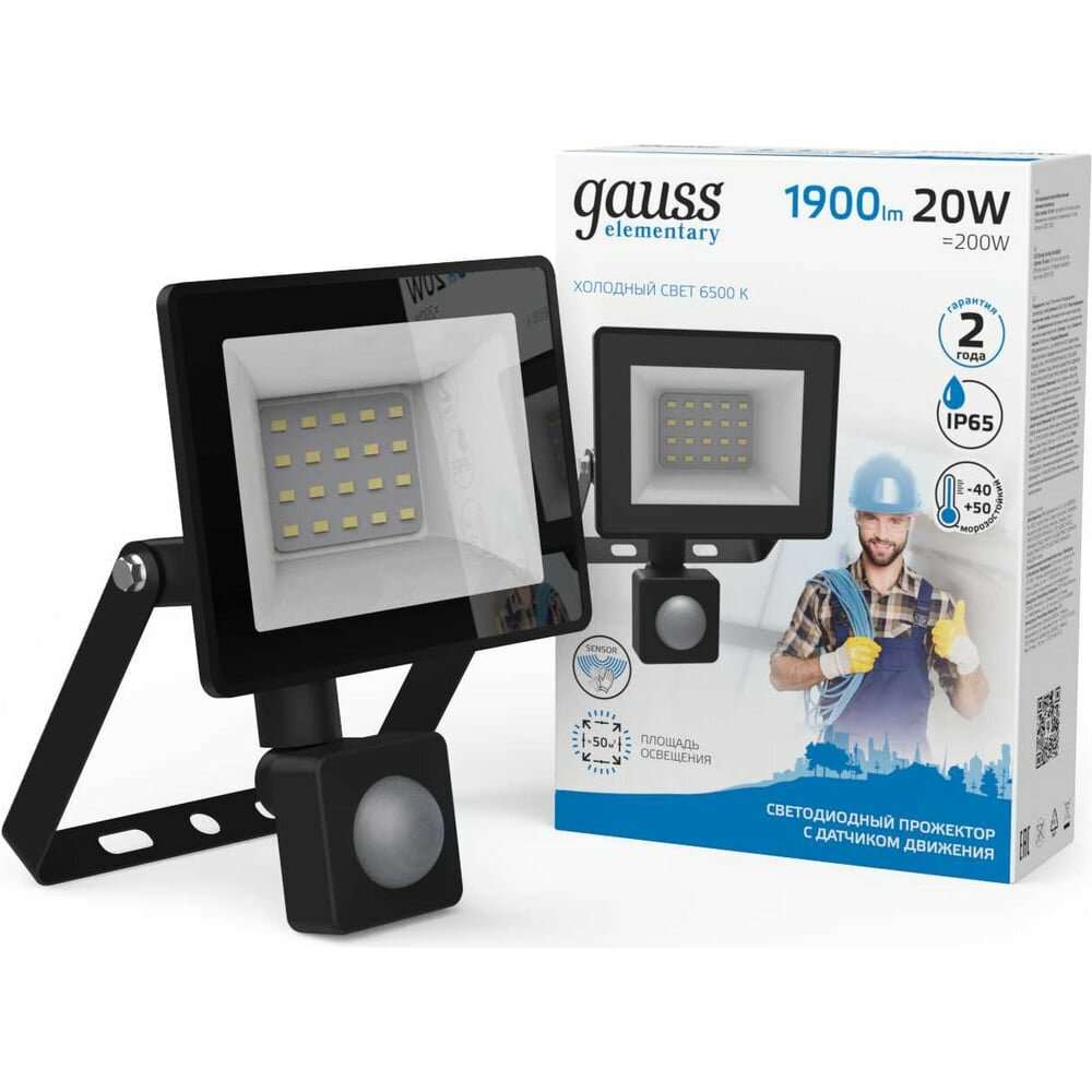 Прожектор светодиодный Elementary 20Вт 1380лм IP65 6500К с датчиком движения Gauss GAUSS 628511320 (1 шт.)