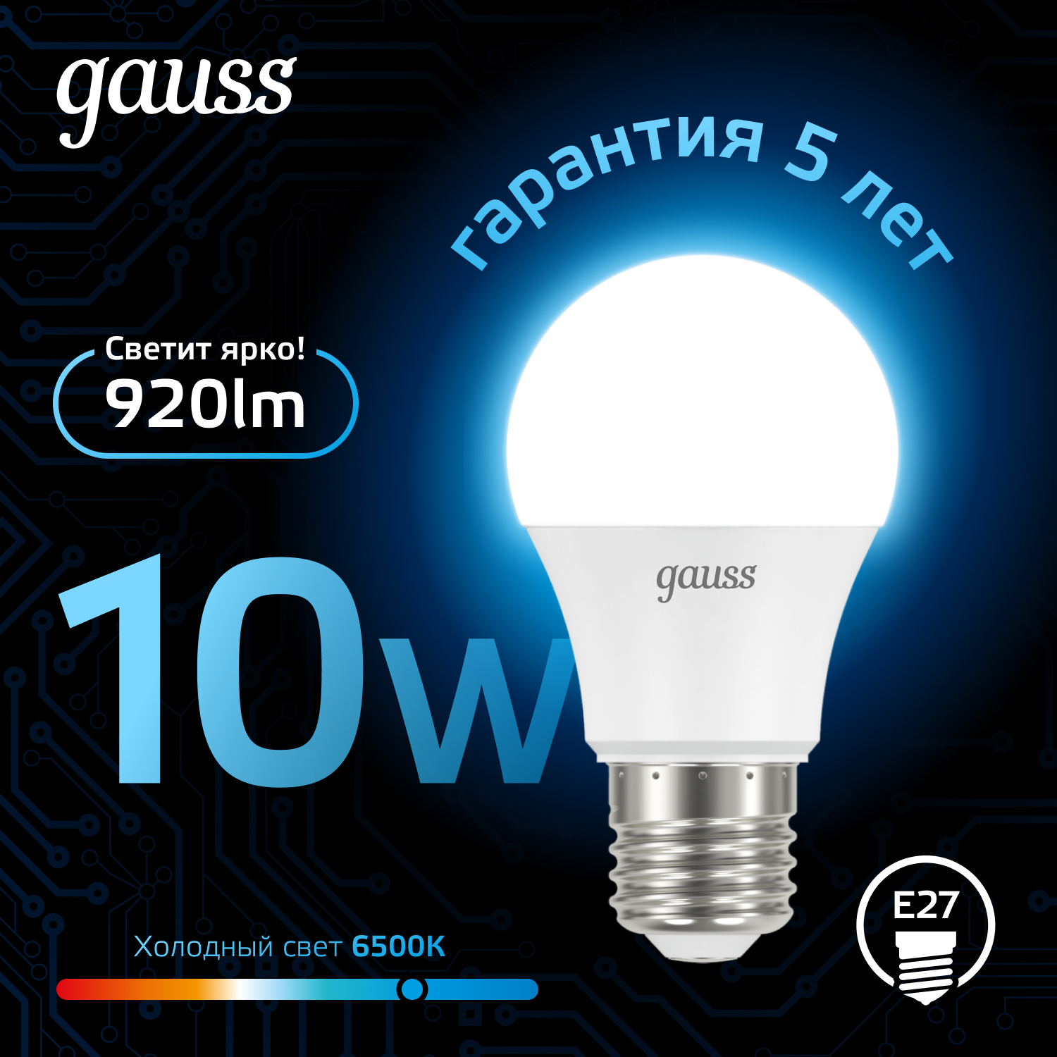 СохранитьЛампочка светодиодная E27 Груша 10W холодный свет 6500K упаковка 10 шт. Gauss интересное: