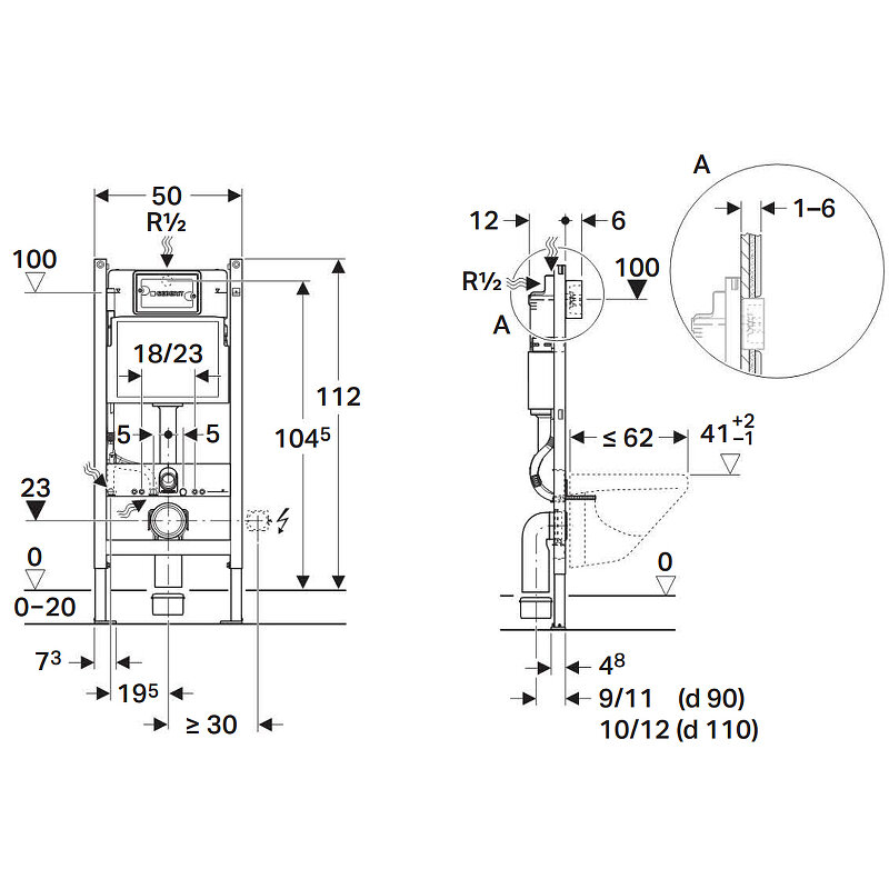 Geberit (Keramag) 458.134.21.2 Инсталляция Geberit Duofix для подвесного унитаза, 112 см, со смывным бачком скрытого монтажа Delta 12 см, смывная клавиша Delta20 Хром