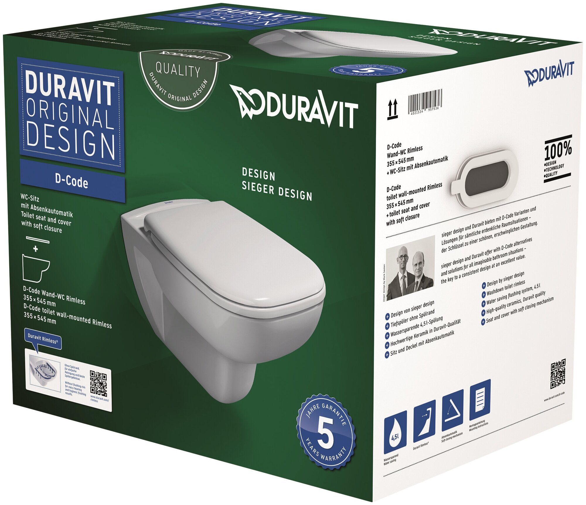 Унитаз подвесной Duravit D-Code Rimless (с крышкой SoftClose) 45700900A1