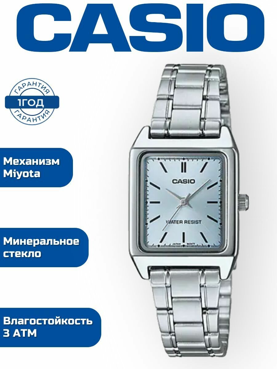 Купить Наручные часы CASIO LTP-V007D-2E, голубой, серебряный