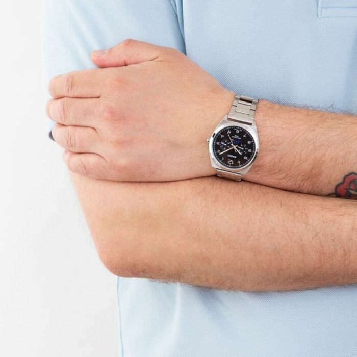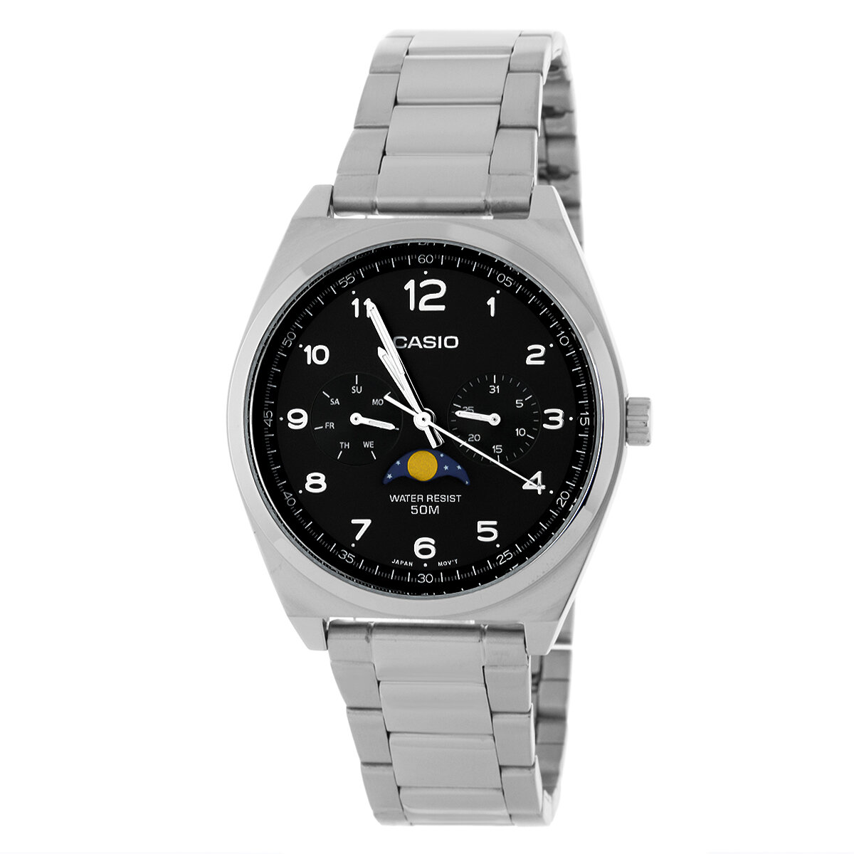 MTP-M300D-7A Casio наручные часы кварцевые WR50 (5 атм) мужские хром лунный календарь отображение дня недели, отображение числа подсветка стрелок минеральное стекло