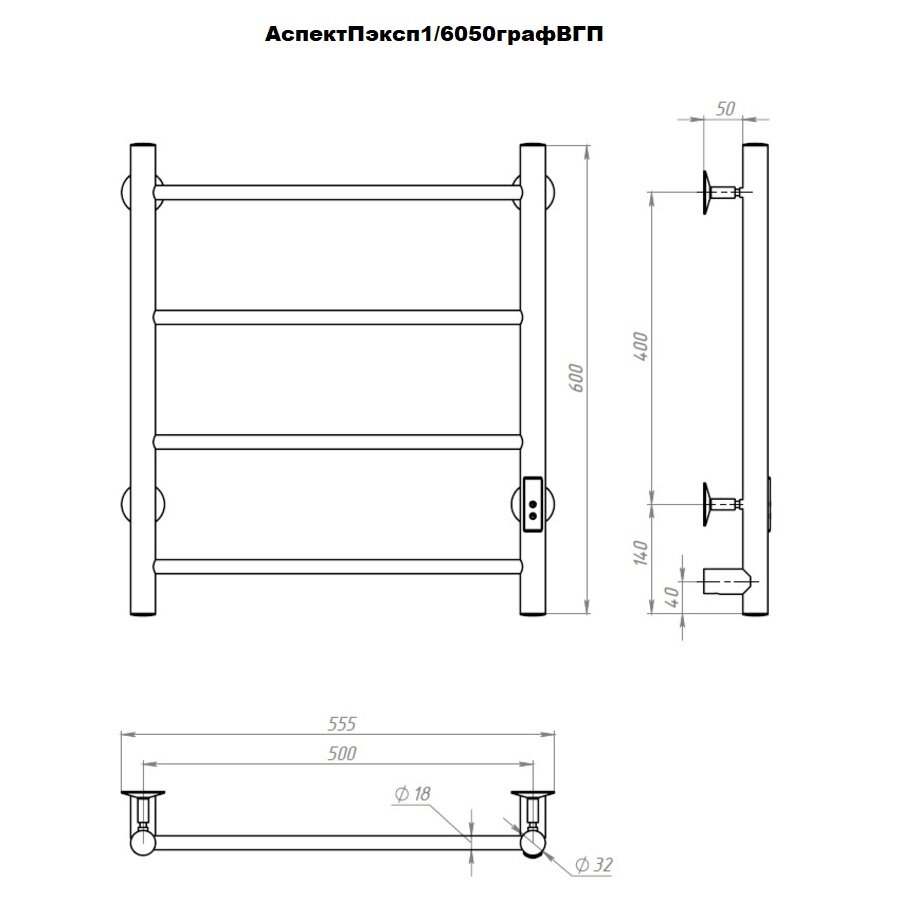 Купить Полотенцесушитель электрический Тругор 500мм 600мм форма лесенка серый графит подключение универсальное