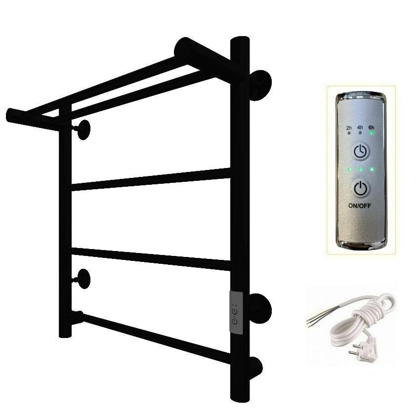 Полотенцесушитель электрический Status ПЭК сп 5 ВГП 60 на 50 с полкой, черный, универсальное подключение, таймер