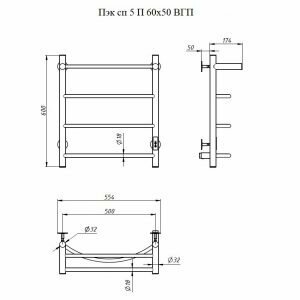 Полотенцесушитель Электрический Тругор Пэк сп 5 П 60х50 черный ВГП