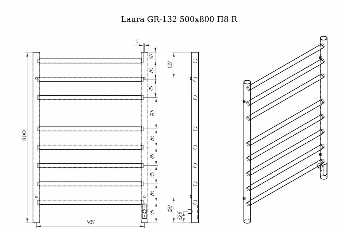 Полотенцесушитель электрический Laura GR-132 500x800 П8 grey R -правое подключение