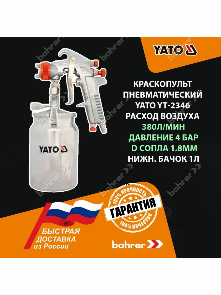 Краскопульт С Нижним Бачком 1Л Сопло1,5Мм 380Л/Мин Yato Yt-2346 YATO арт. YT-2346