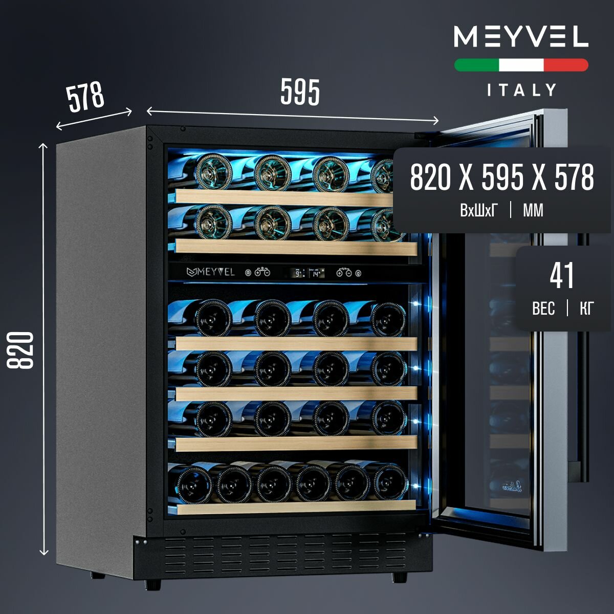Винный холодильный шкаф Meyvel MV46PRO-KBT2 компрессорный (встраиваемый / отдельностоящий холодильник для вина на 46 бутылок) интересное:
