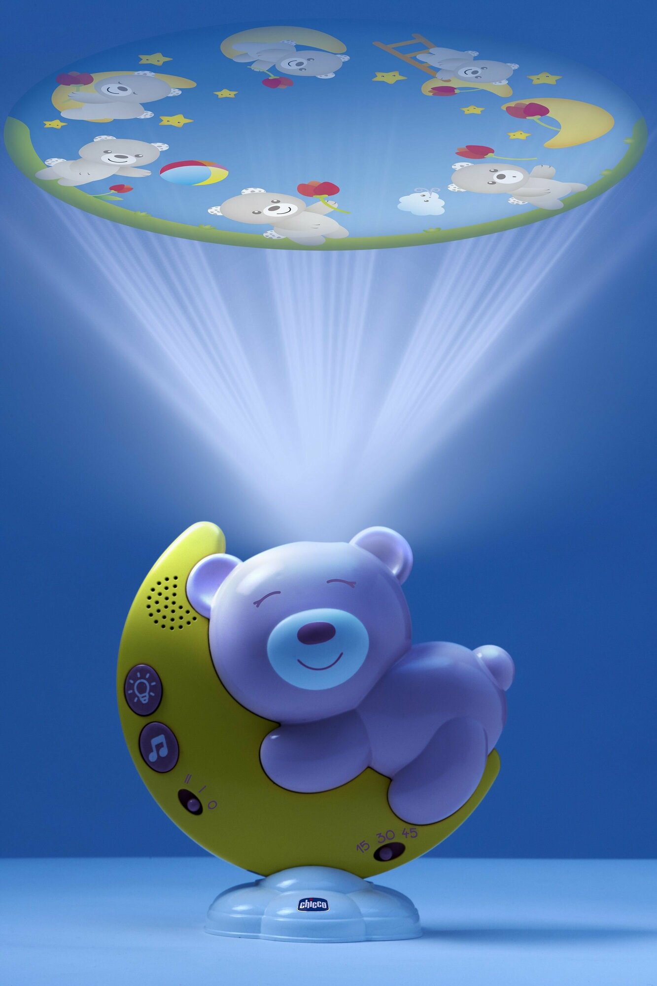Мобиль музыкальный в кроватку с детским ночником проектором Chicco Next2Moon голубой