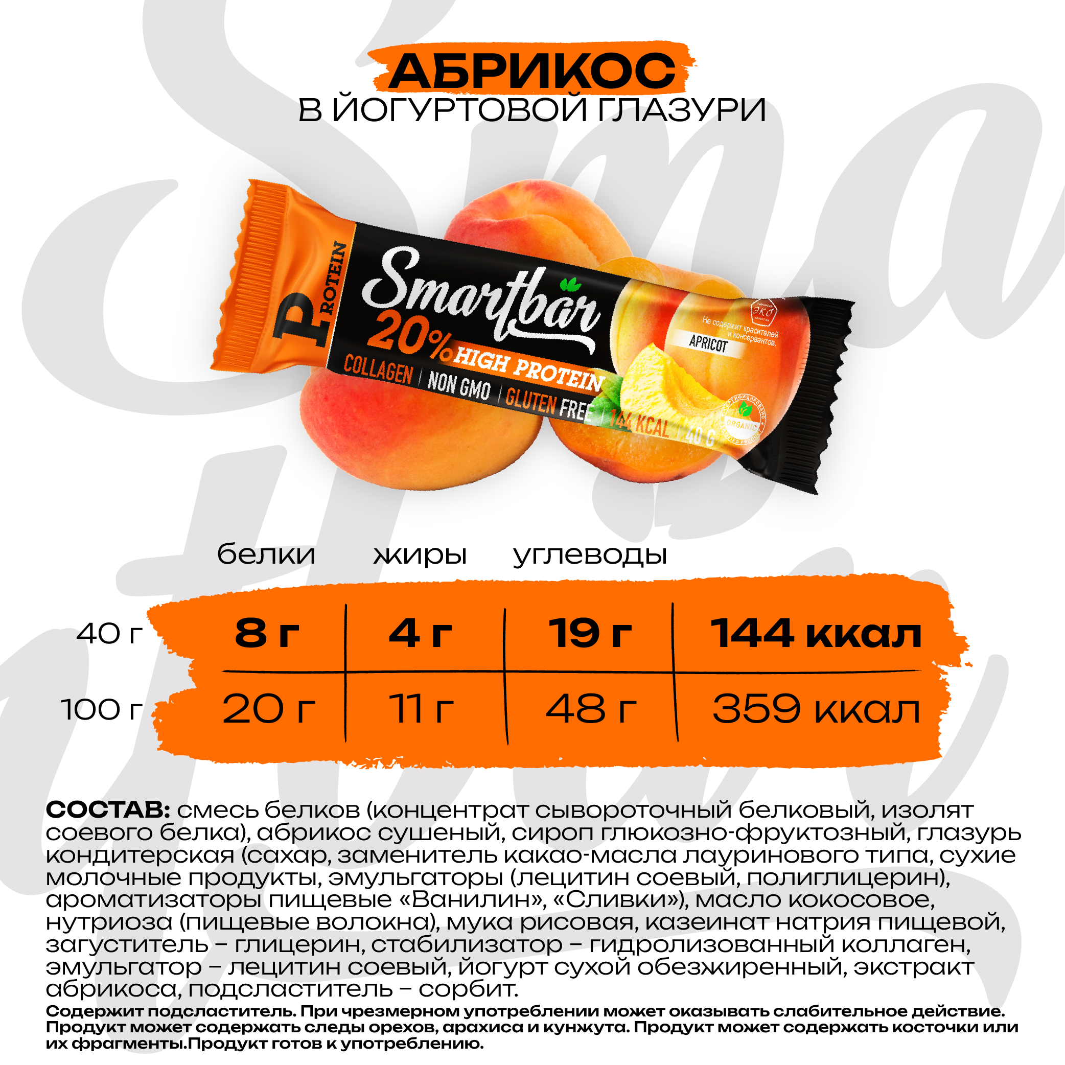 Батончик протеиновый Smartbar Protein ассорти "Абрикос, банан, шоколад, кокос, груша", 8 шт.