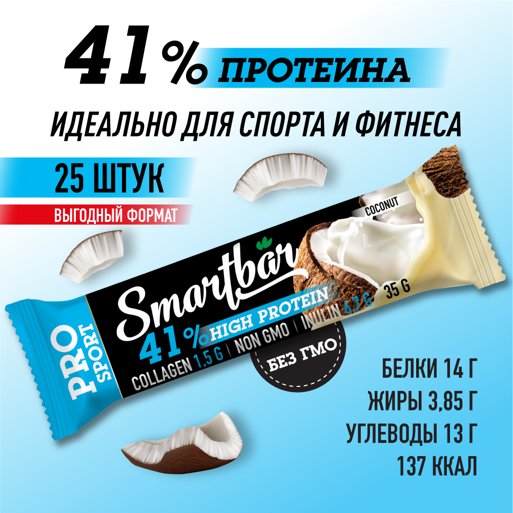 Купить Протеиновые батончики SmartBar Protein Pro 41% "Кокосовый" 35г (25шт)