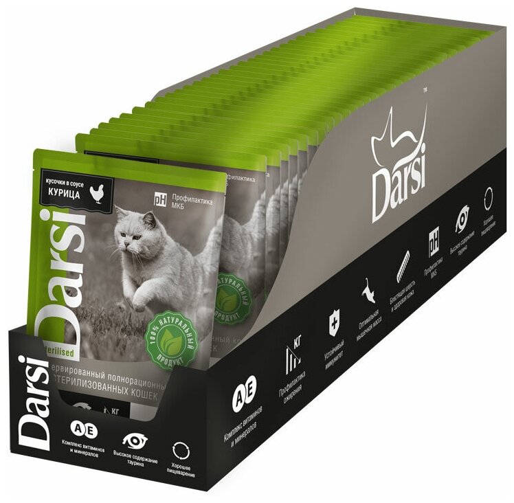 DARSI STERILISED CAT для взрослых кастрированных котов и стерилизованных кошек с курицей в соусе (85 гр х 32 шт)