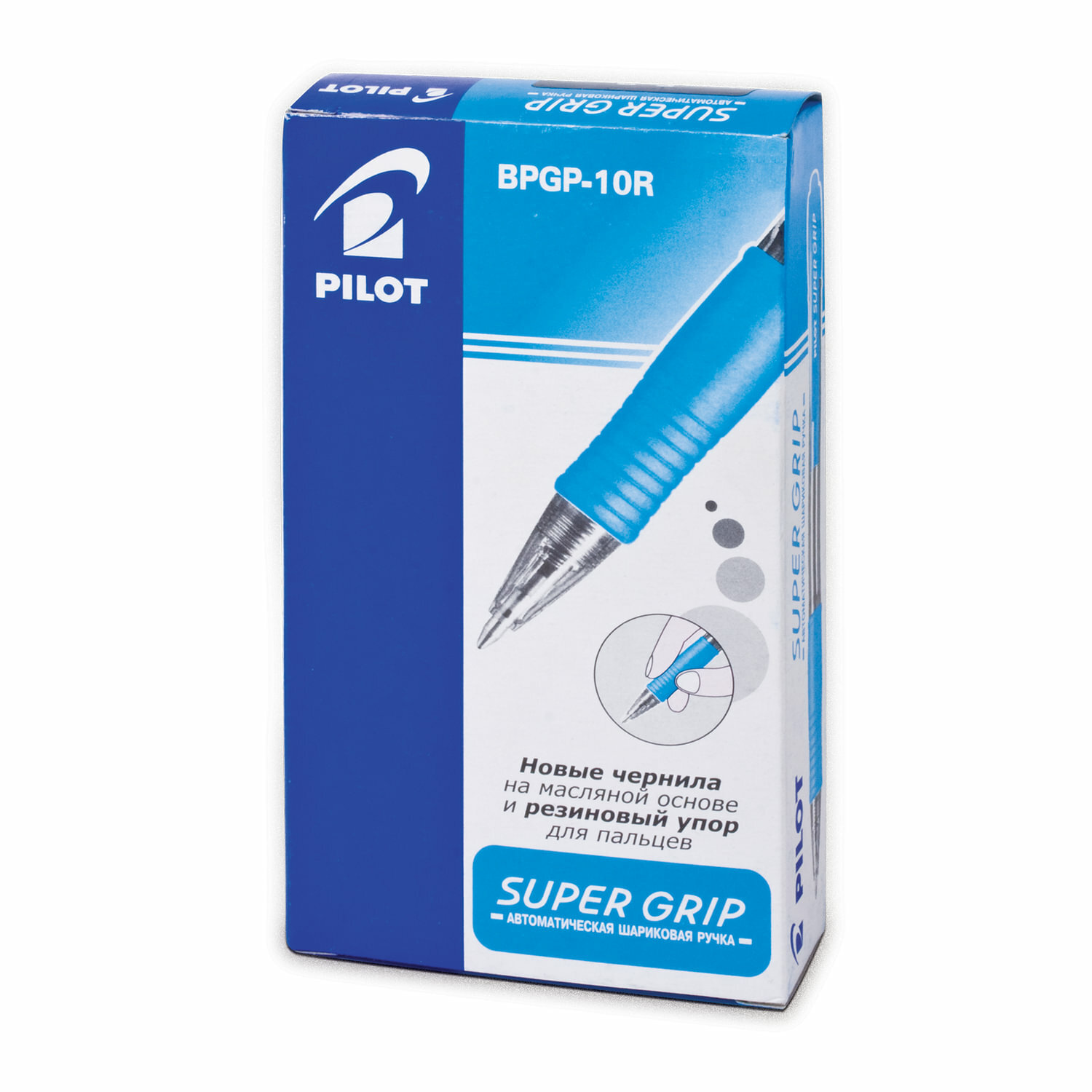 Ручка шариковая автоматическая Pilot "Super Grip" синяя, 0,7 мм, голубой грип, упаковка 12 шт.