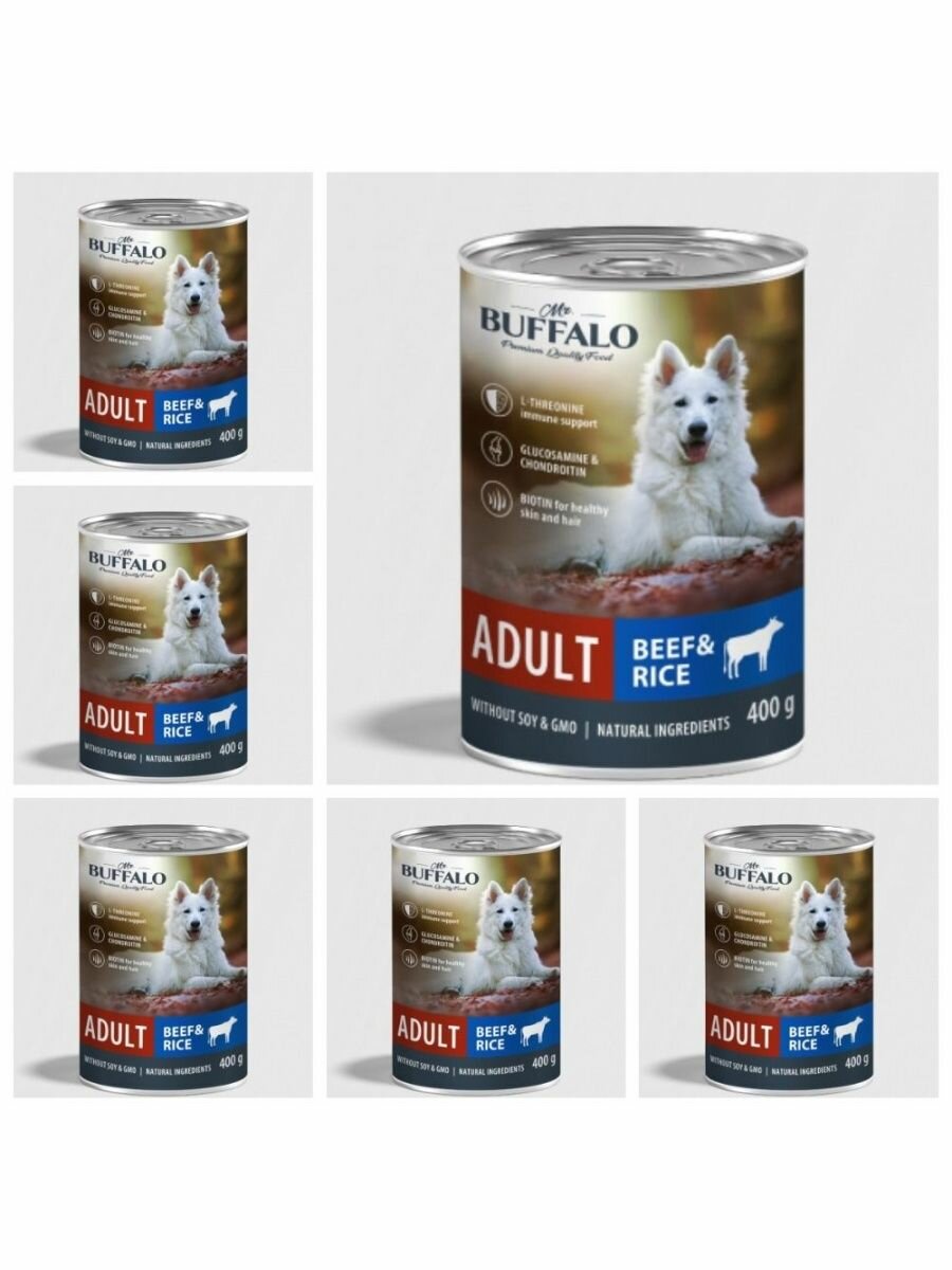 Баффало Mr.Buffalo Adult Dog 6 шт по 400г говядина и рис консервы для собак