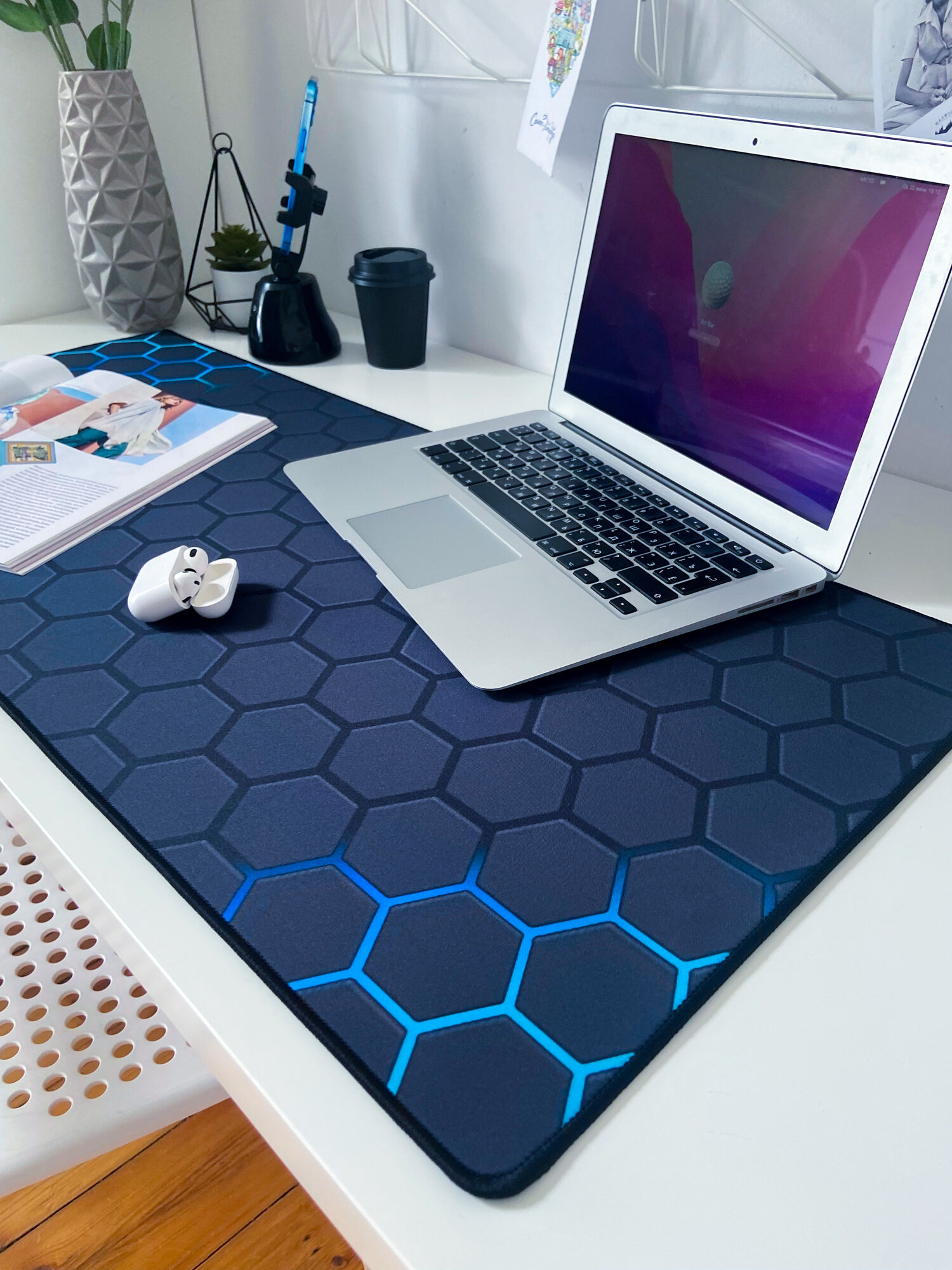 СохранитьБольшой коврик для мышки игровой 400x900x3 мм Соты синий интересное: