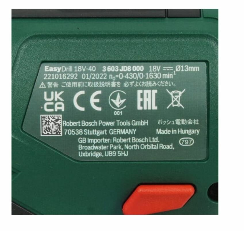 Аккумуляторная дрель-шуруповерт Bosch EasyDrill 18V-40, 2 х АКБ 1,5 А/ч, ЗУ, арт. 06039D8002