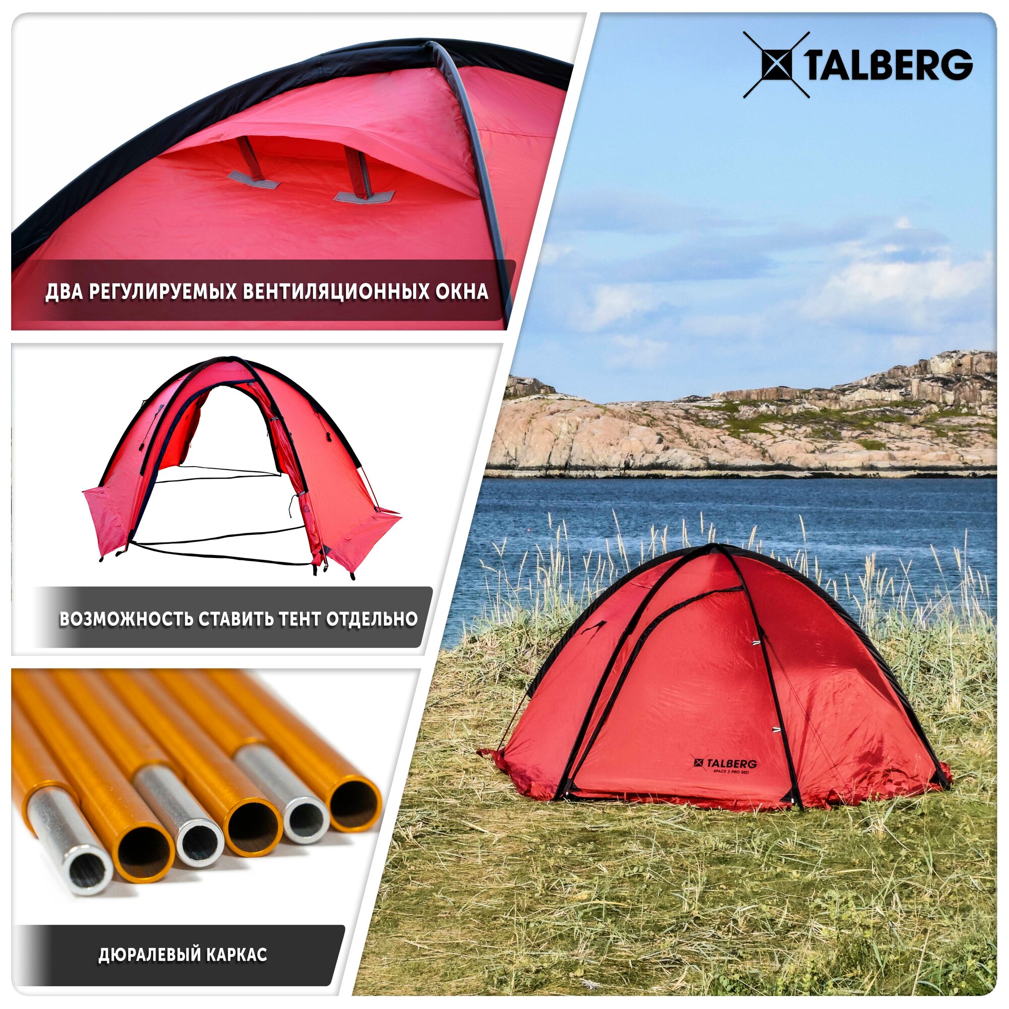 СохранитьПалатка туристическая экстремальная Talberg SPACE PRO 2 RED , красный интересное: