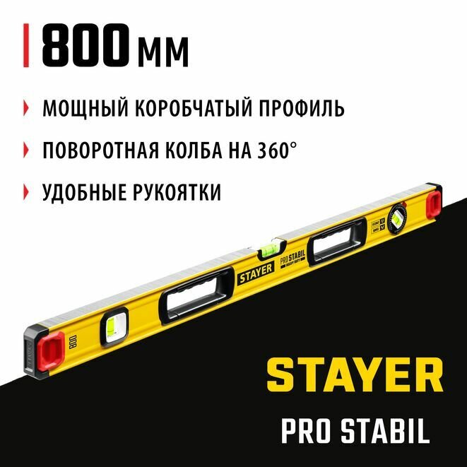 STAYER PRO STABIL, 800 мм, усиленный профиль, уровень с поворотным глазком, Professional (3471-080)
