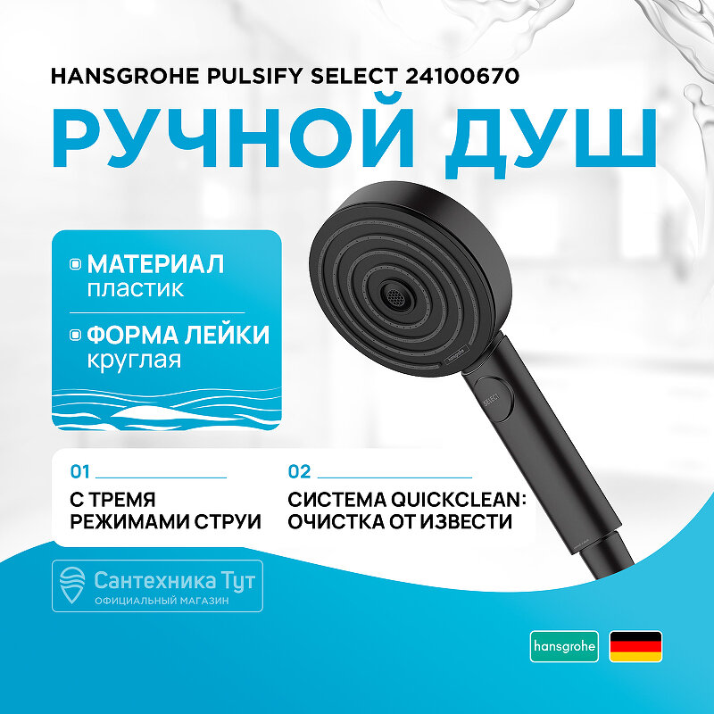 Ручной душ Hansgrohe Pulsify Select Activation 24100670 матовый черный . интересное: